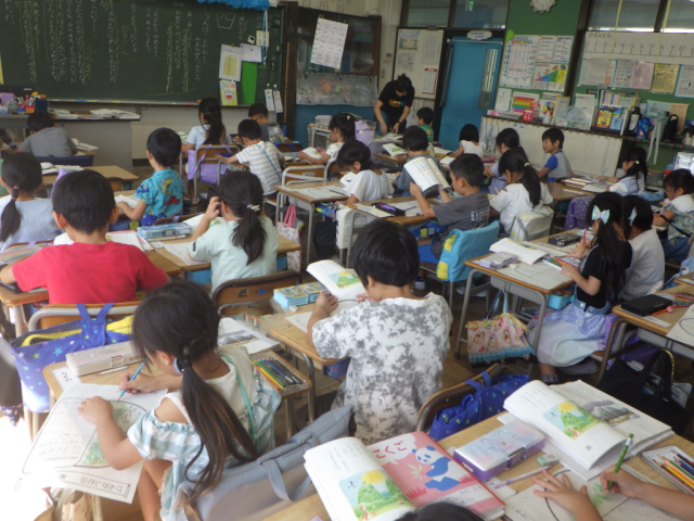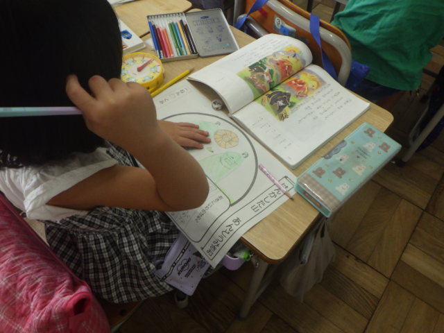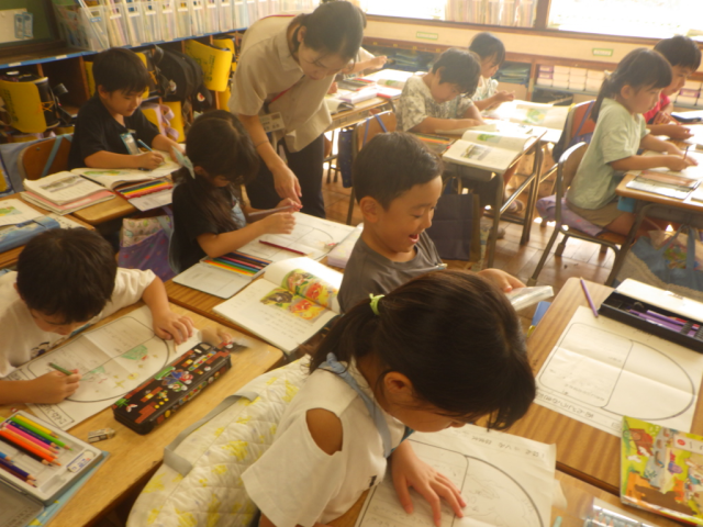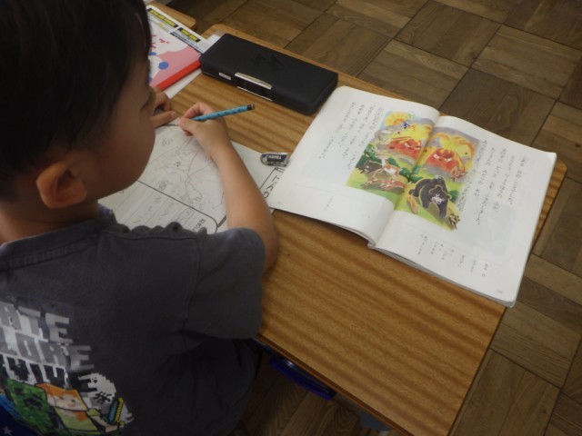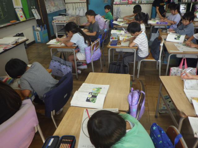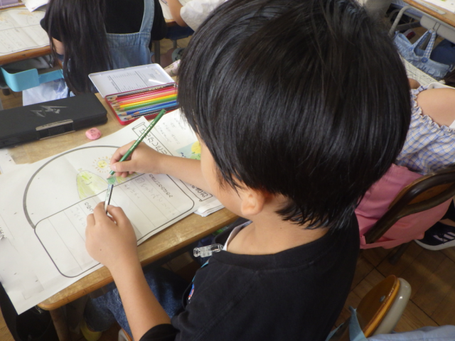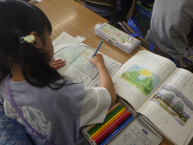 「けんかした山」の様子です。物語を読んでお気に入りの場面を絵に表しました。