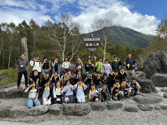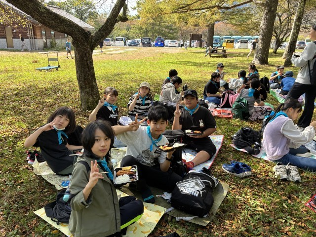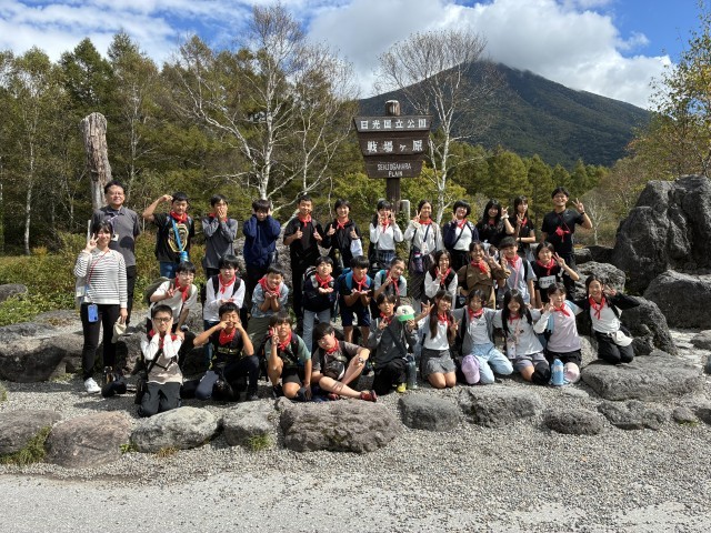 日光国立公園の三本松で記念撮影をし、お弁当を食べました。時間にも余裕があり、広場遊ぶなど、ゆっくりと過ごしています。