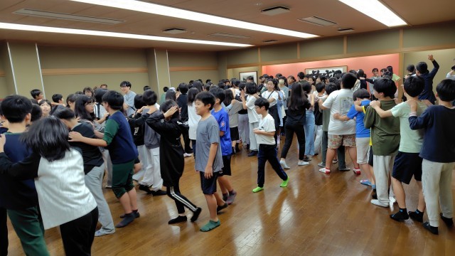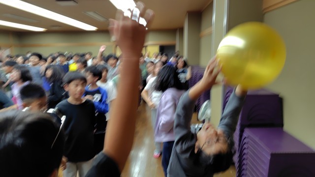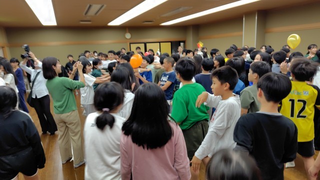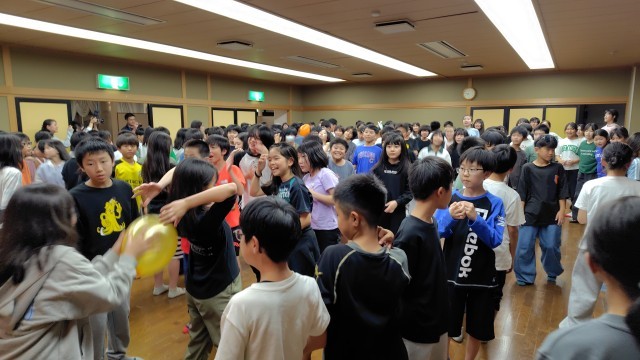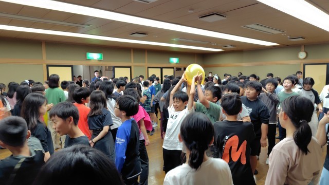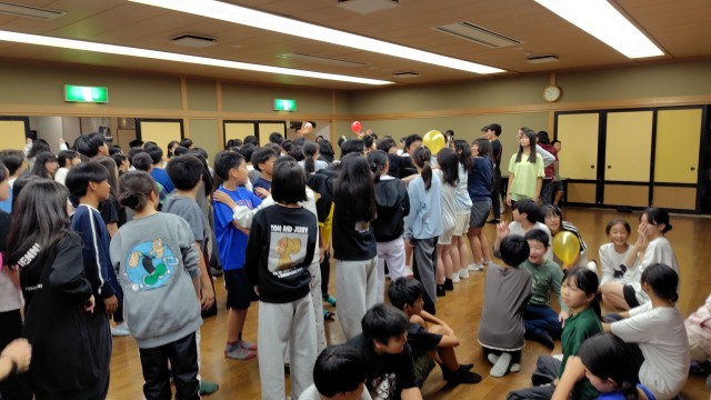 ナイトレクの様子です。じゃんけん列車、風船送りゲーム。