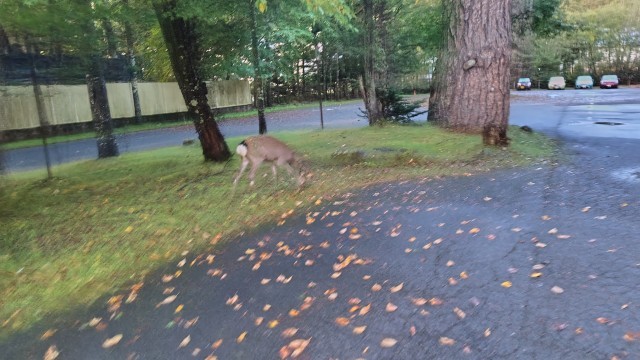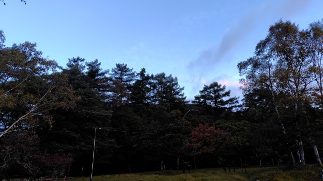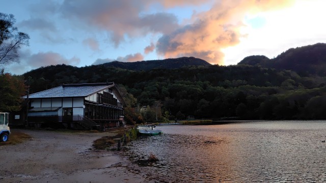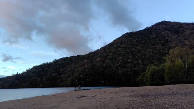 おはようございます!朝の湯ノ湖の様子です。雨は上がりました。まもなく起床時刻です。鹿も姿を見せました。