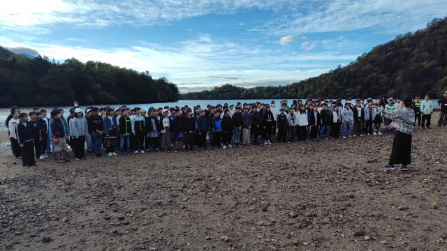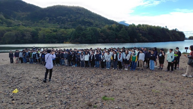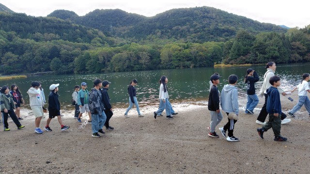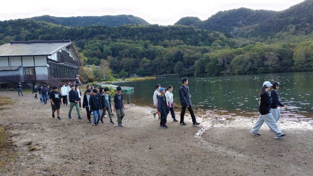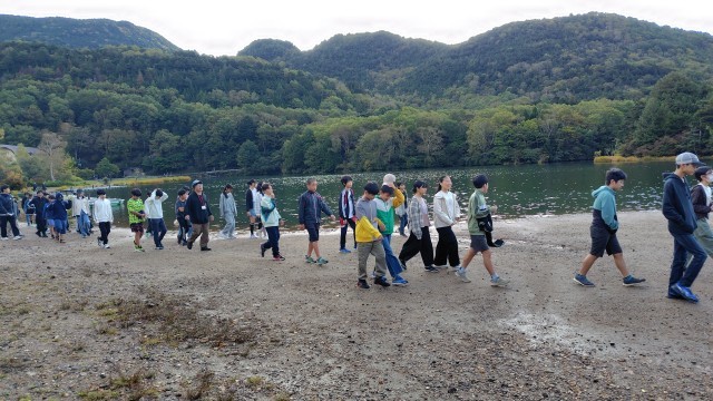 湯ノ湖散策。気持ちのいい朝です。湖畔で学年合唱。奥日光に歌声が響き渡りました。