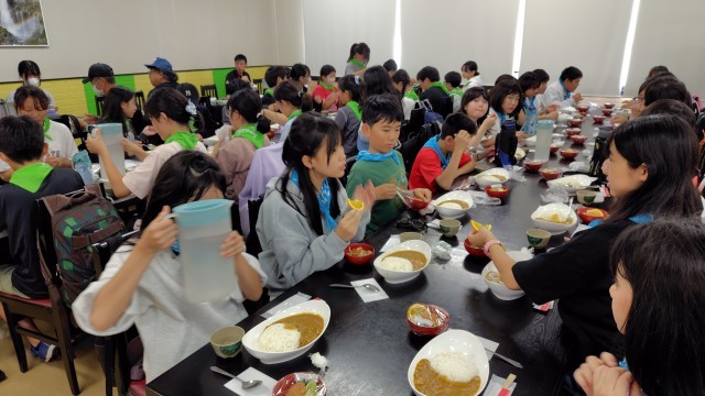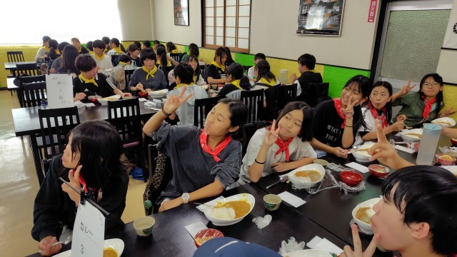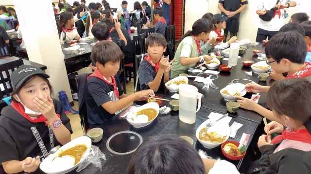 昼食です。カレー、カツ、サラダです。