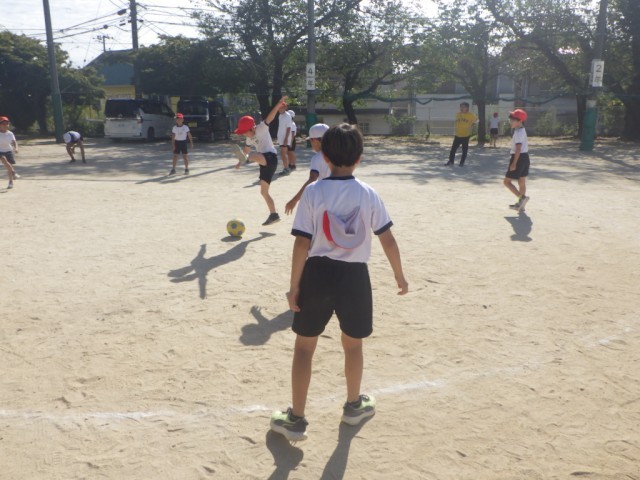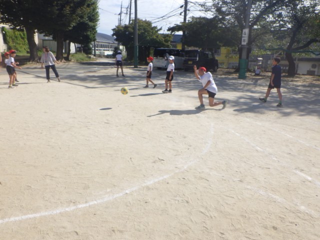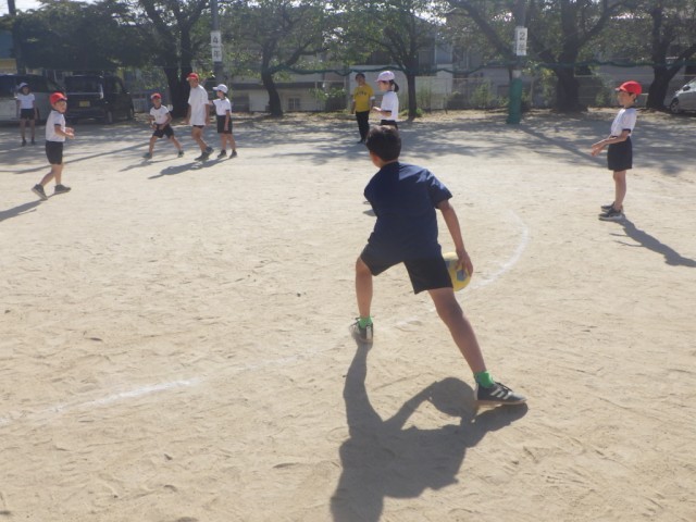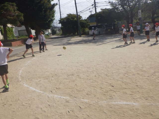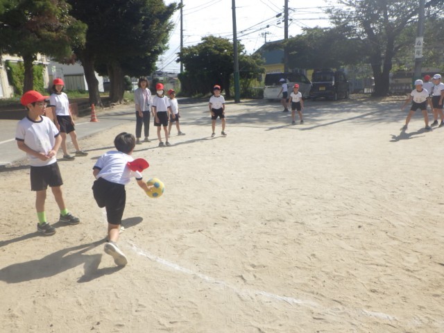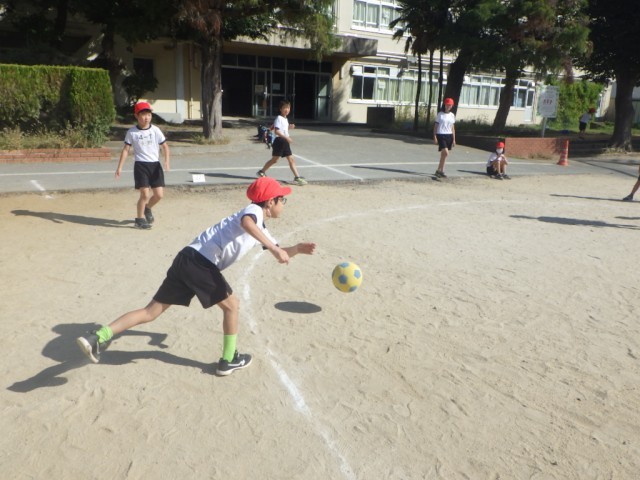 「ころころドッジボール」の様子です。異学年で助け合い、譲り合いながら楽しく活動できました。