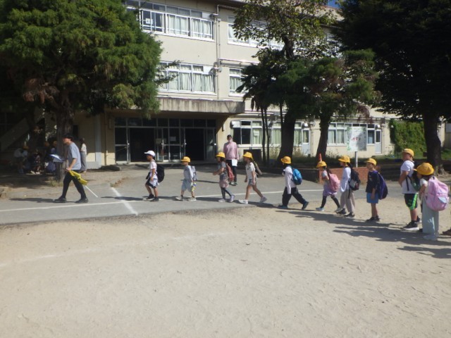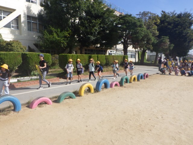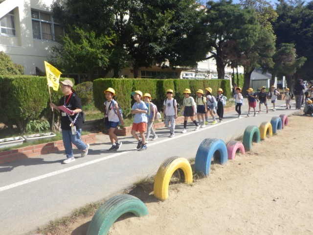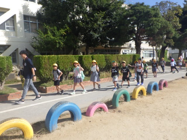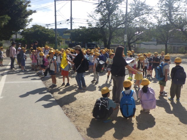 「町のキラリを見つけよう(町探検)」の様子です。この日のために事前に準備を重ねてきました。出発です。