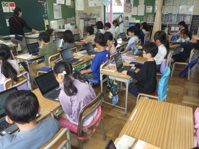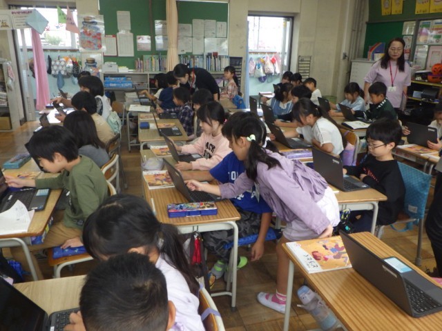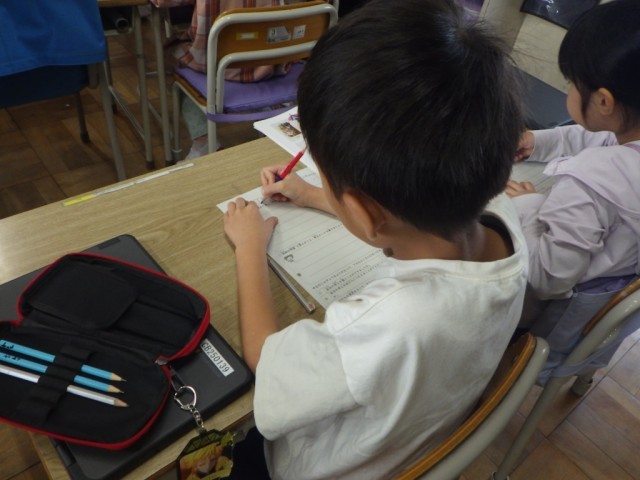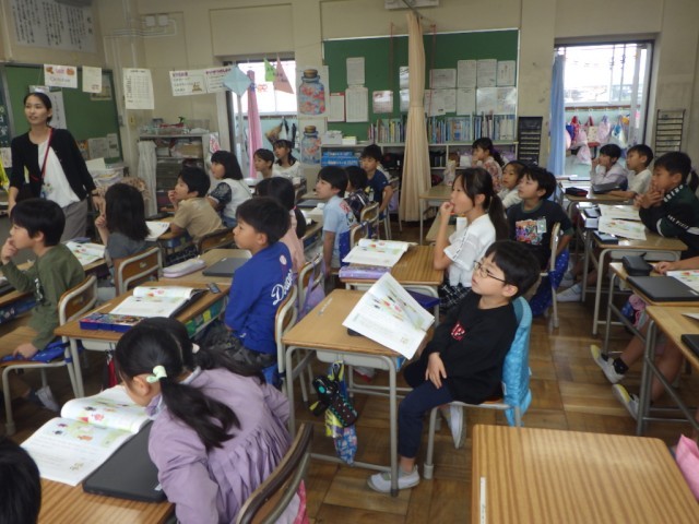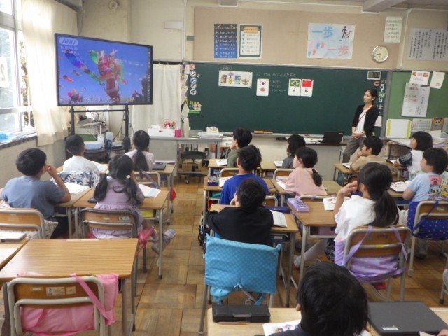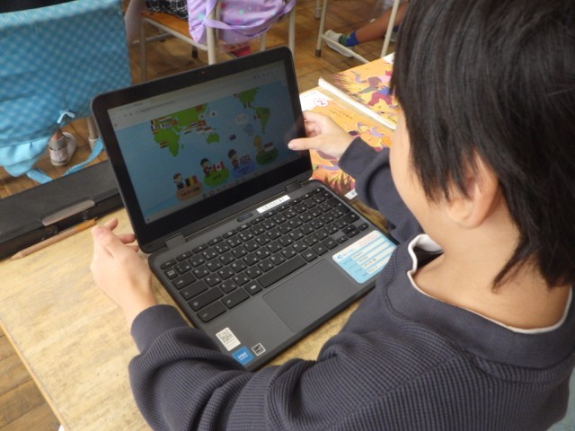 教材「世界の国の人たちと」の様子です。他の国の人たちと仲良くするためには、どうすれば良いのか、意見を交流しました。