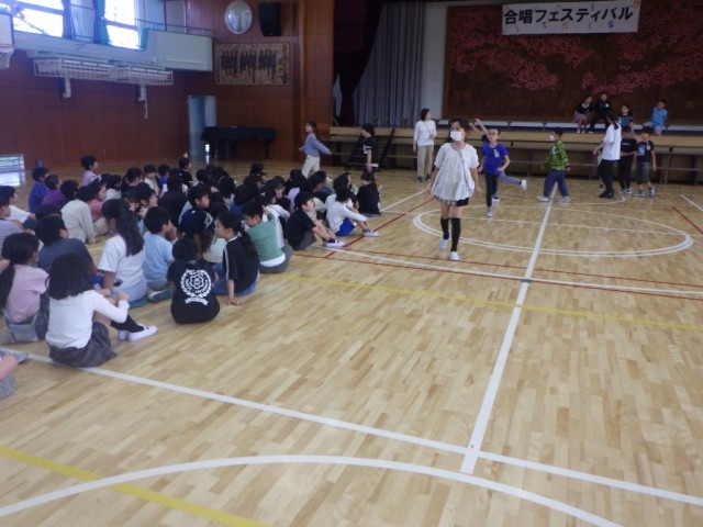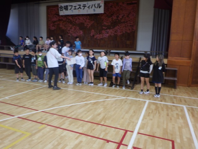 合唱フェスティバルに向けて、隊形や移動の確認を行いました。