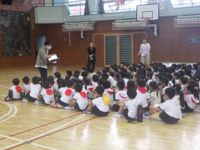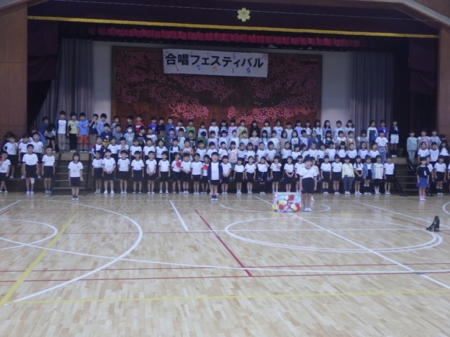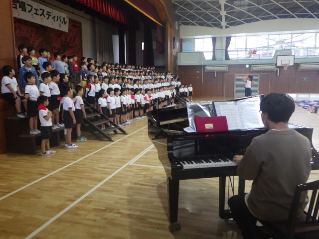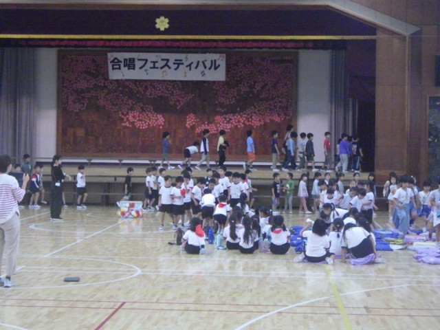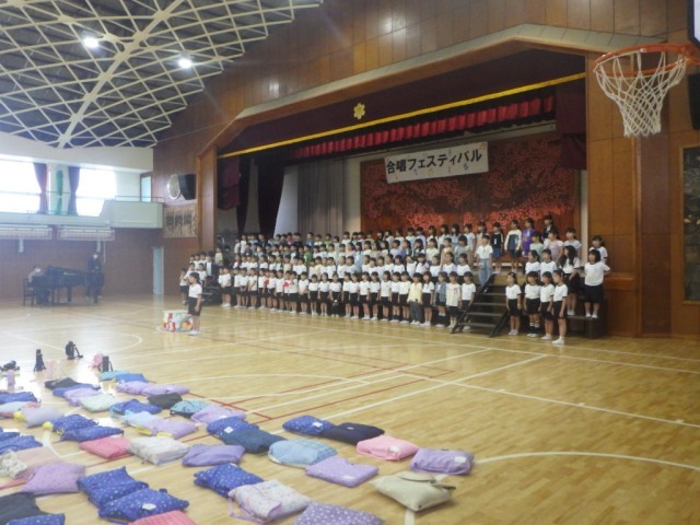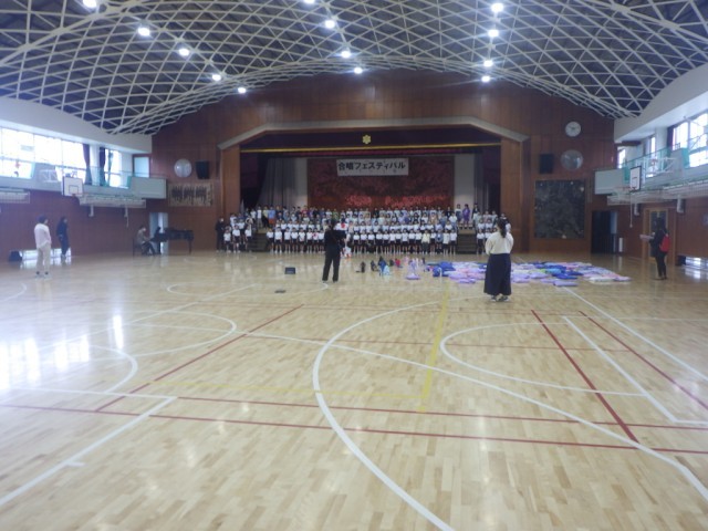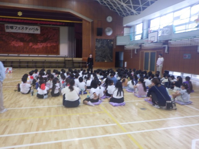 体育館では、1年生が合唱フェスティバルに向けて、練習を行っていました。入場、合唱披露、退場と一連の流れを確認していきました。小学校初めてのフェスティバルです。