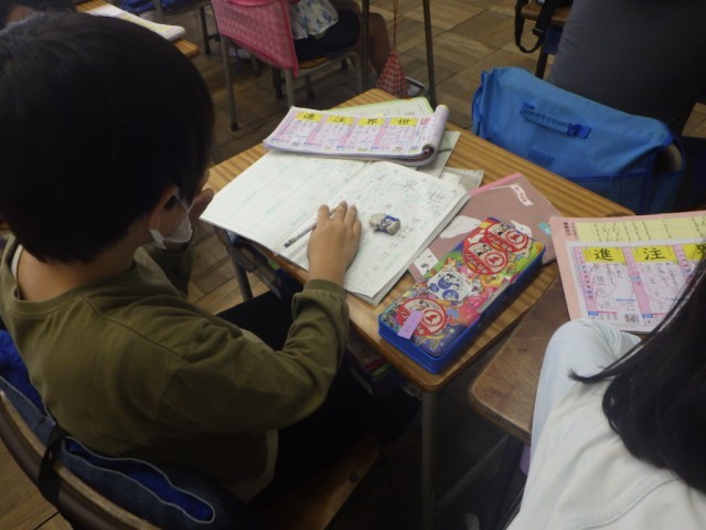 漢字ドリルを活用して、漢字学習に取り組みました。一心に練習に励む姿に感心しました。集中して取り組んでいます。