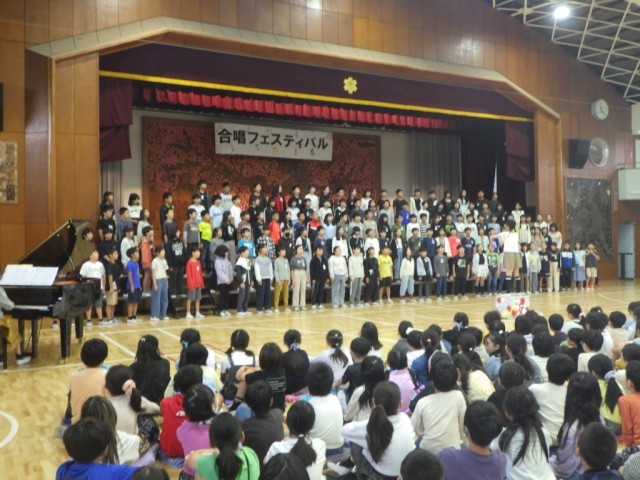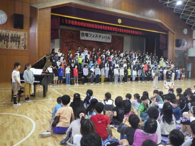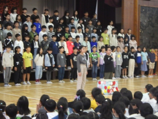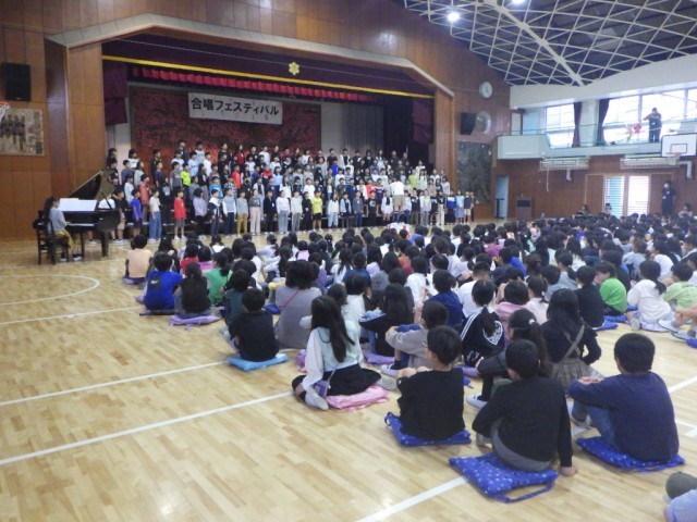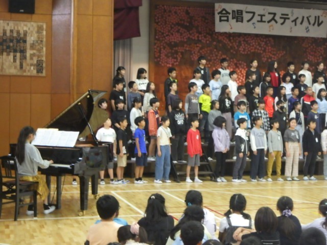 5年生の様子です。5年生合唱「ひろい世界へ」。