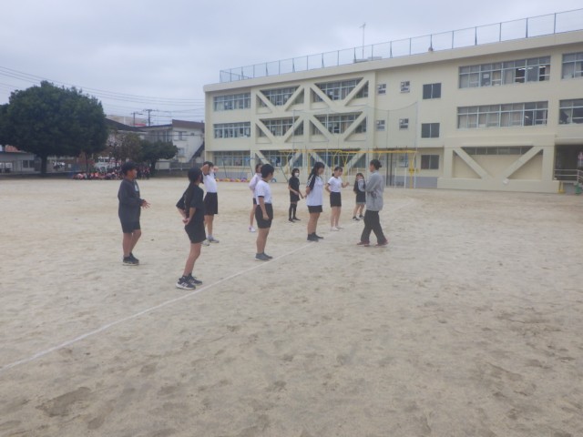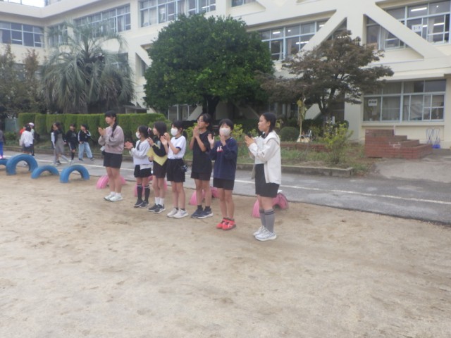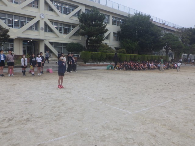 20日昼休み、校庭では「陸上大会壮行会」のリハーサルが行われました。陸上大会に向けて、志気が上がってきました。