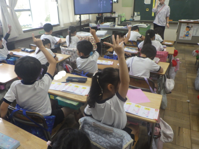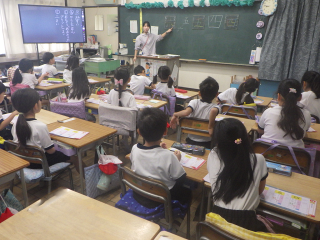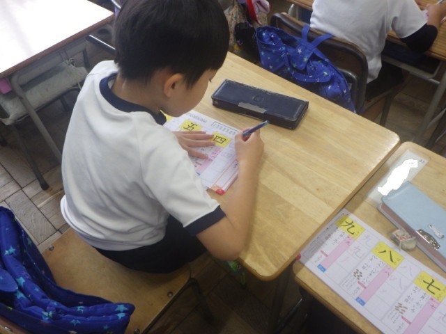 漢字学習の様子です。「四」「五」「六」の書き方、読み方を学習しました。