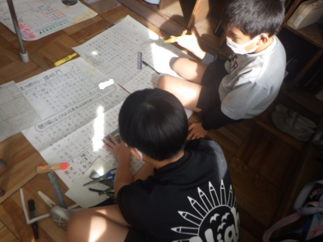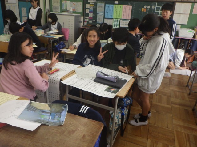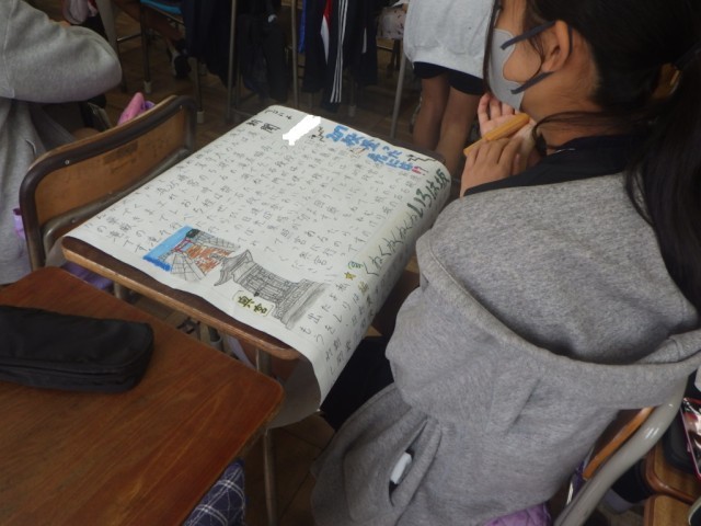 修学旅行を振り返って、壁新聞を作る作業もだいぶ進んできました。個性豊かな新聞が出来上がりつつあります。