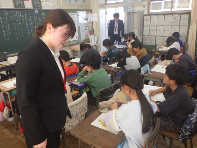 5校時、教育実習生による精錬授業が行われました。教材研究を重ね、指導案を作成し、今日を迎えました。
