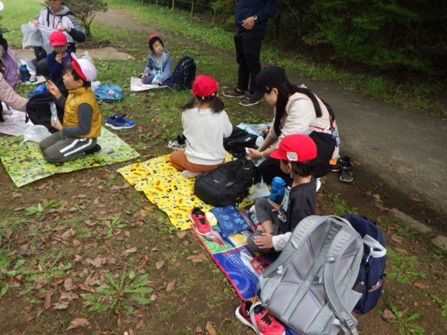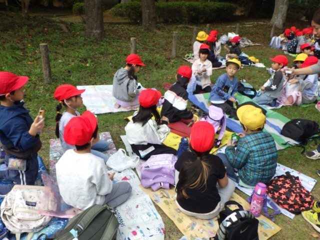 市制公園を一通り散策した後、集合場所にて一息つきました。楽しみにしていたおやつタイムに表情が緩んでいました。