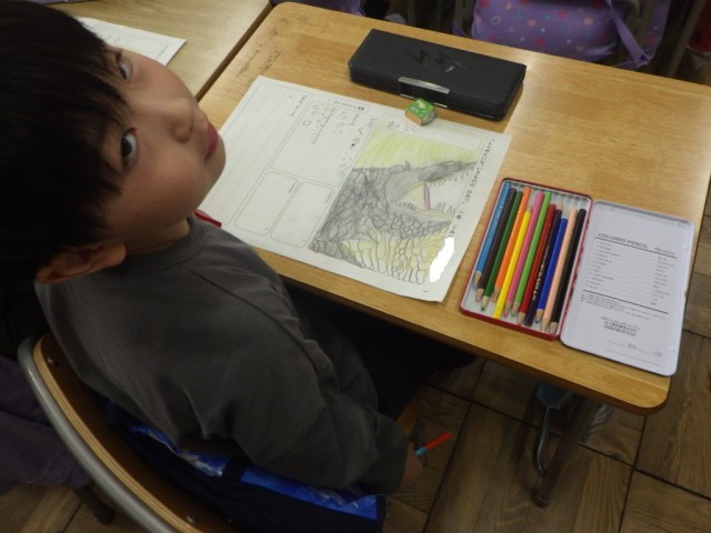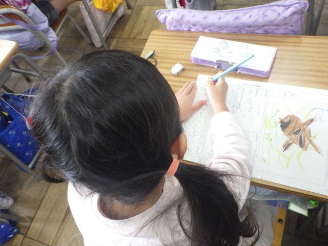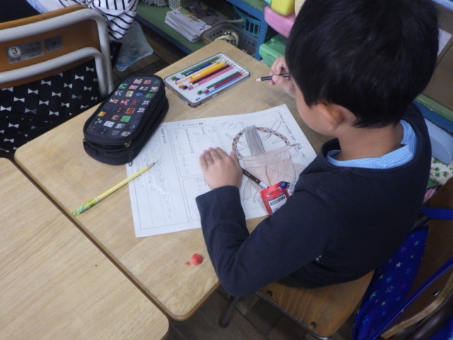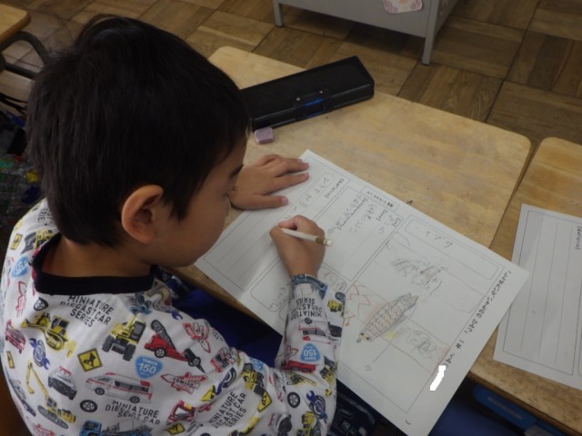 「しりたいな いきもののひみつ」の様子です。調べた生きものを絵で表し、色や形などをまとめ、自分が思ったことをシートにまとめました。