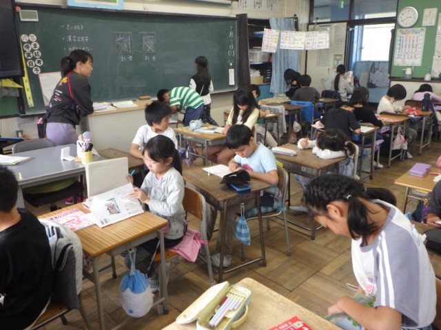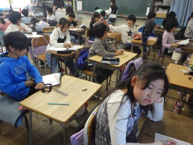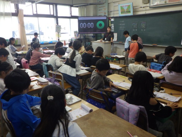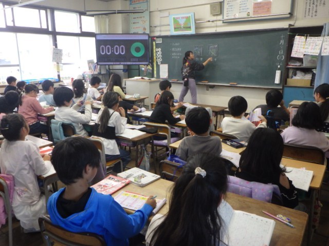 5校時「太陽の光」の様子です。鏡で太陽の光を跳ね返して的に当てる学習の予定でしたが、午後になって太陽が雲に隠れて延期となりました。6校時「漢字の学習」の様子です。