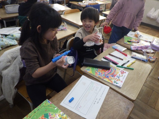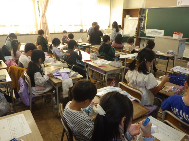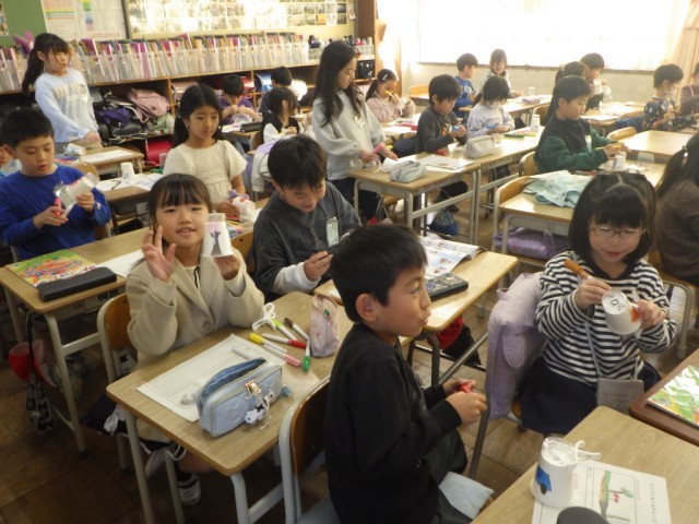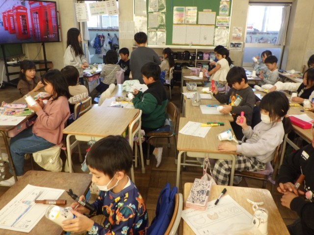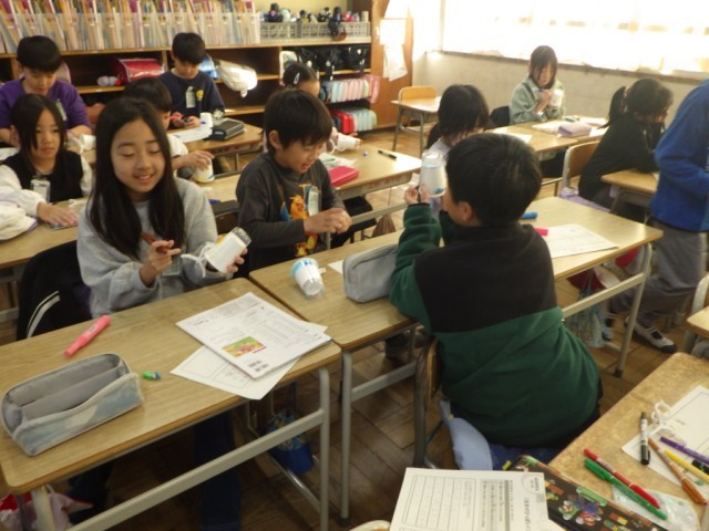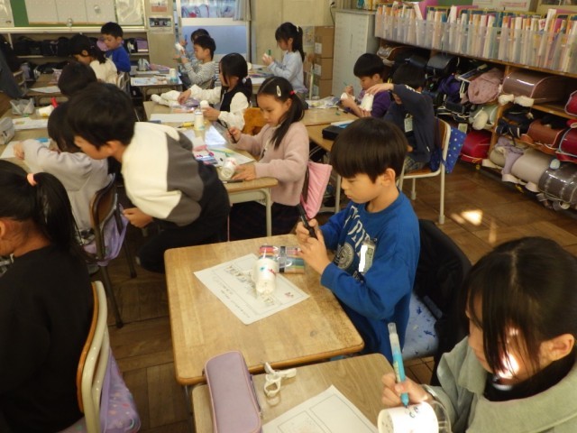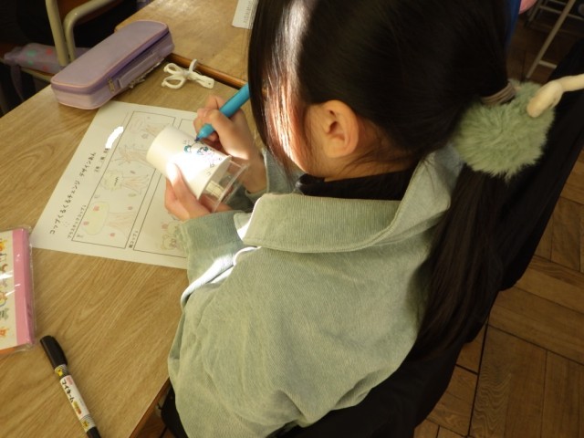 「コップくるくるチェンジ」の様子です。各自が作ったデザイン案をもとに、作品に仕上げていきました。