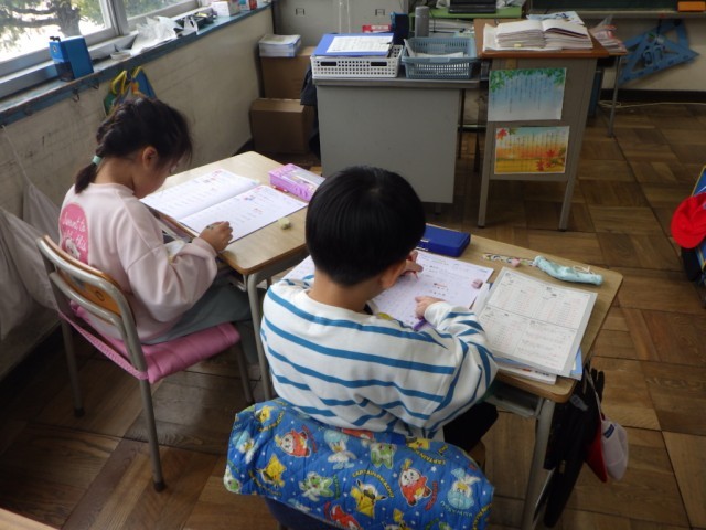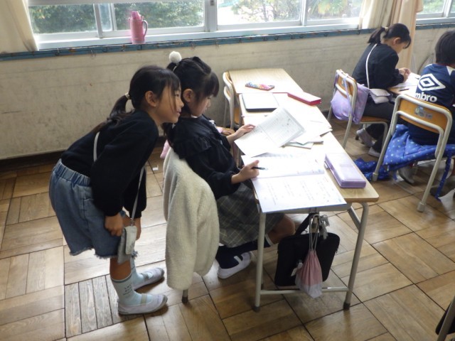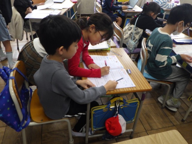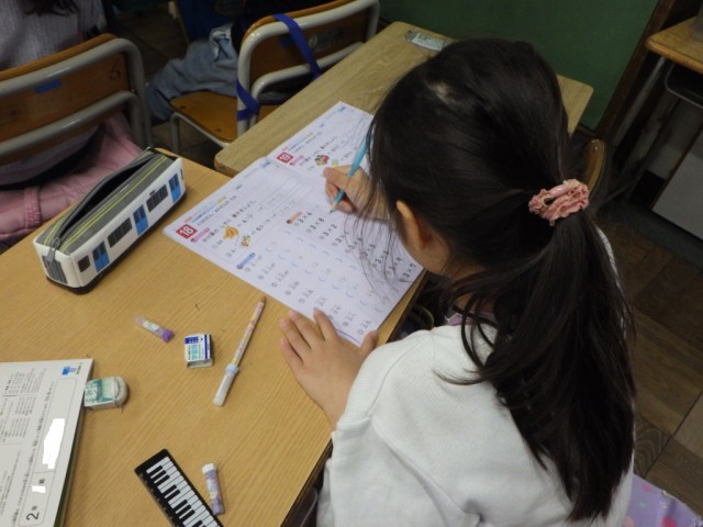 計算ドリルを自主的に進めました。わからないところは先生や友だちに聞いて解決していきました。