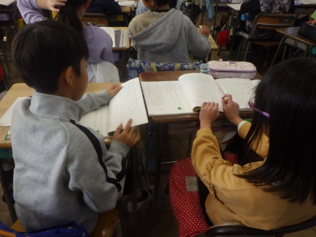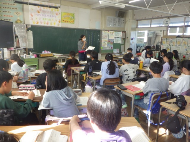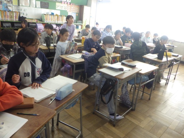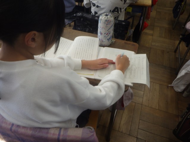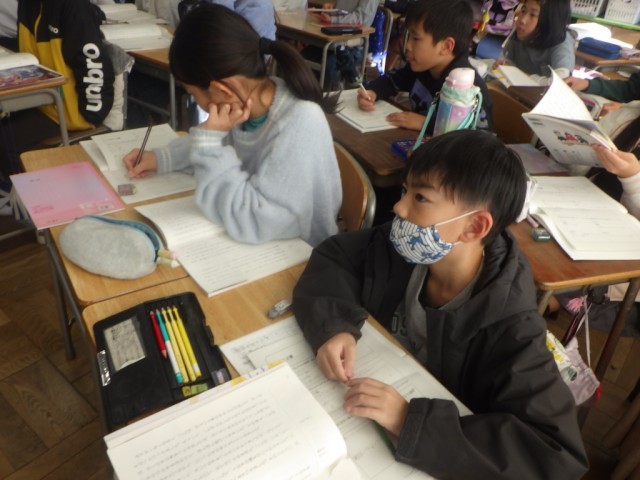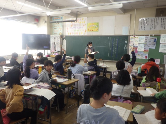 「ごんぎつね」の様子です。「物語のはじめとおわりで、ごんと兵十の関係はどのように変わったでしょうか」まとめていきました。
