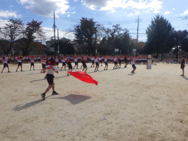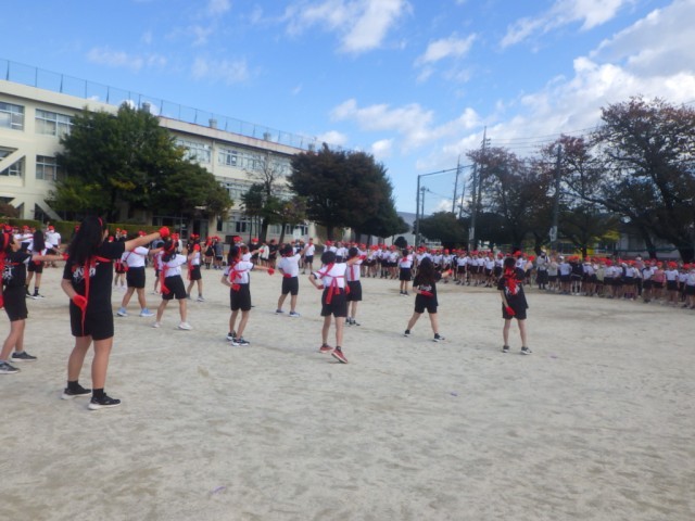 応援席を確認後、応援団を中心とした応援合戦の練習を行いました。