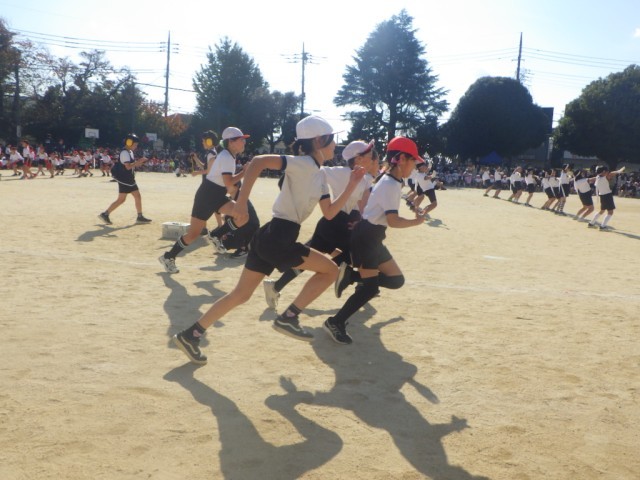 「掴み取れ!自分だけのCHANCE!」4年生徒競走。スタートラインに立つその瞬間。一人一人に訪れるたった一つのCHANCEがあります。ぜひ、自分だけのCHANCEを掴み取るために、ゴールを目指します。