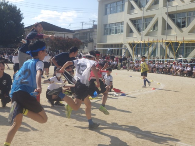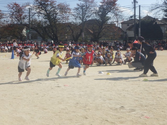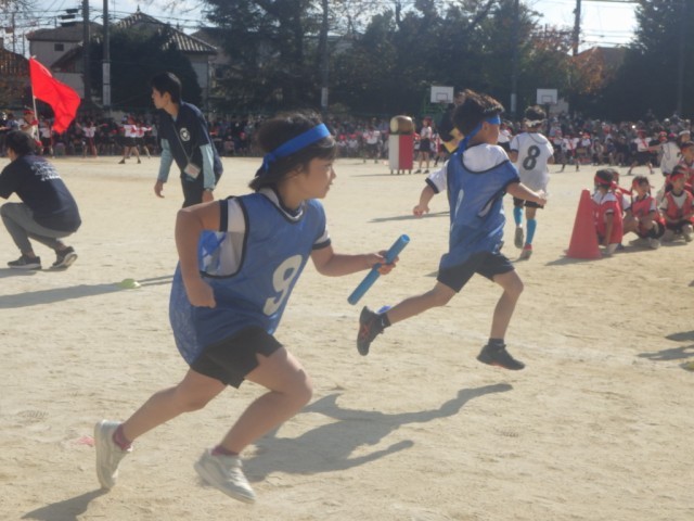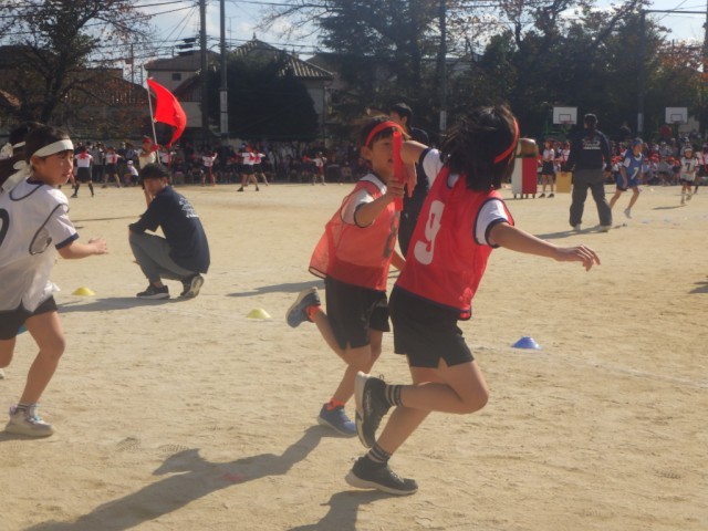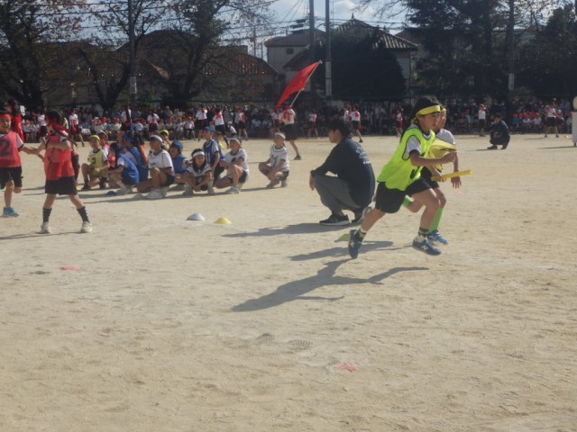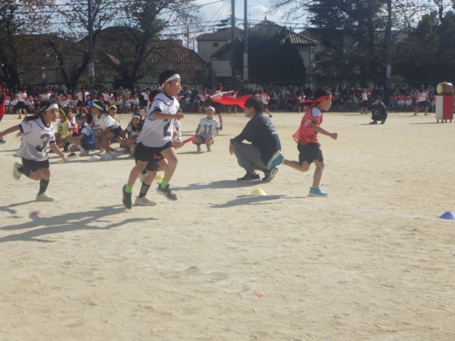 紅白対抗リレー低学年の部の様子です。