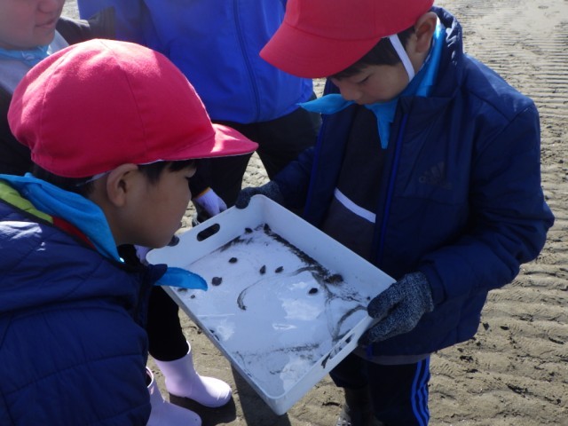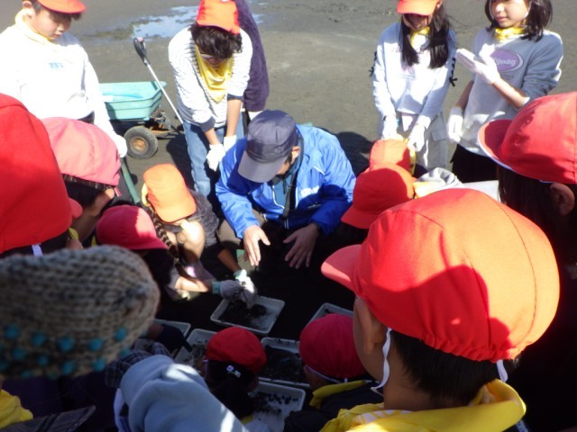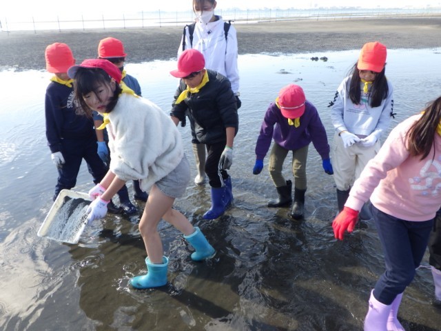 20日(木)に行われた4年生の校外学習の様子です。干潟を散策しながら、干潟に生息する生きものを見つけました。