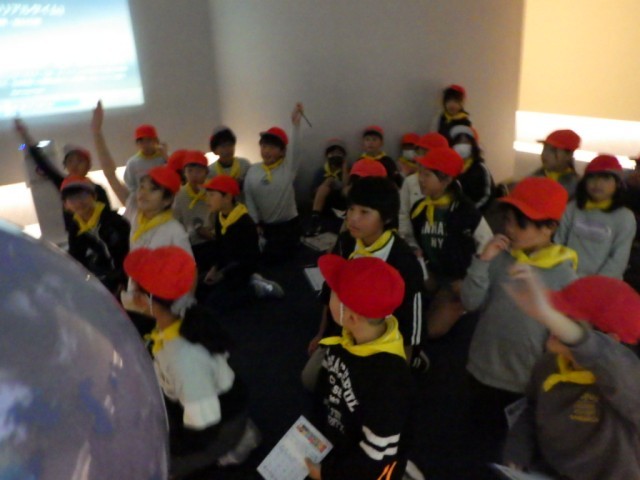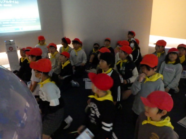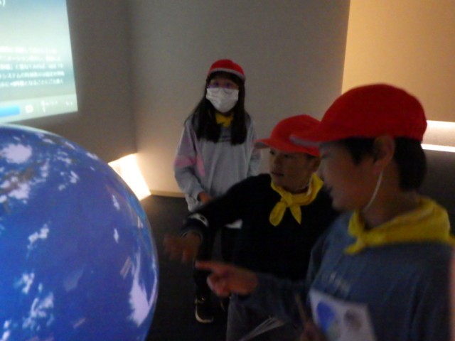 20日(木)に行われた4年生の校外学習の様子です。映像で三番瀬についてのレクチャーを受けたり、デジタル地球儀「触(さわ)れる地球」の体験をしたりしました。