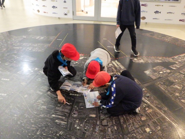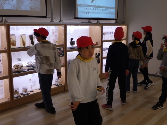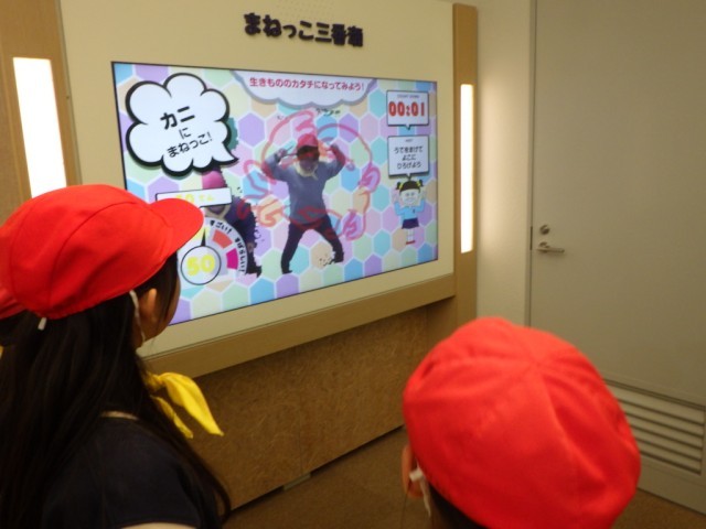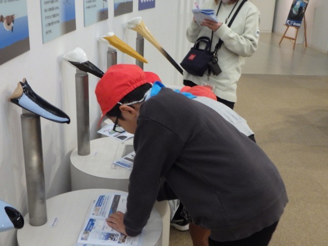 20日(木)に行われた4年生の校外学習の様子です。全身をつかって生きものの「まねっこ」しました。まねるためにじっくり生きものを観察すれば、きっと発見があるはず。文字の描かれたたくさんのボックスをのぞくと、文字に関連する三番瀬の生きものや自然を知ることができます。