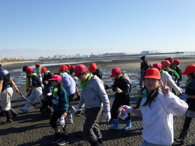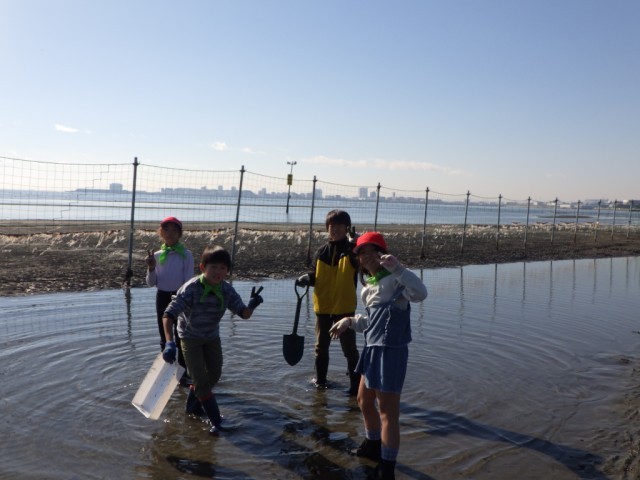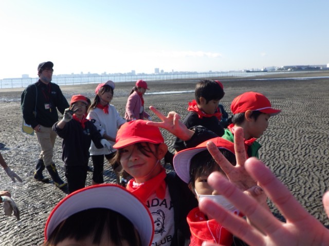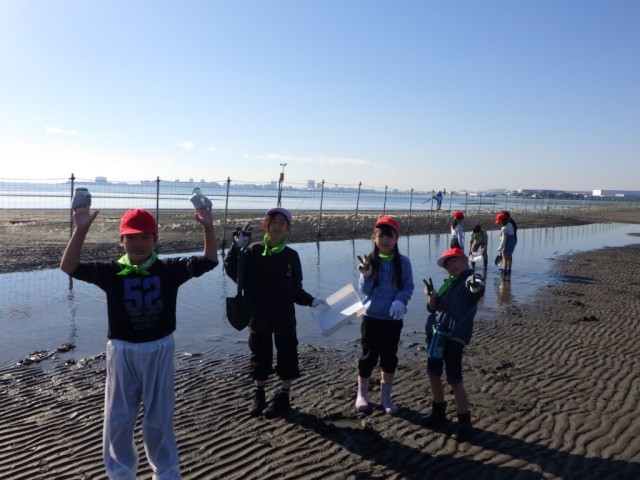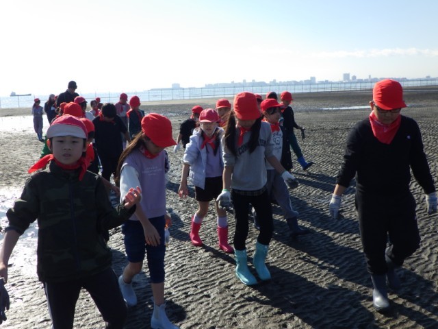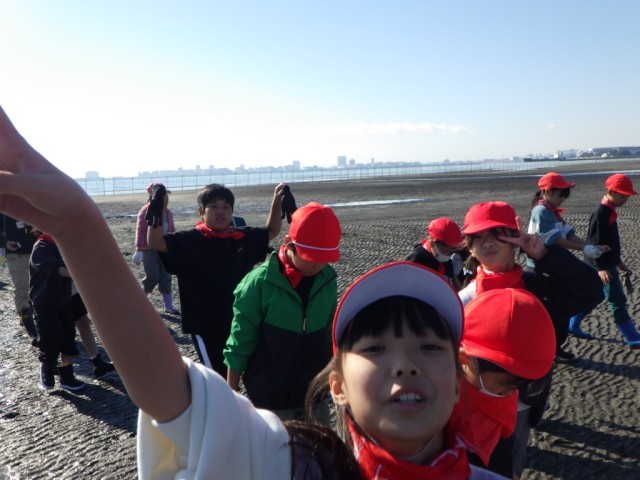 20日(木)に行われた4年生の校外学習の様子です。2つのグループに分かれ、交互に見学していきました。干潟でカニなどの生きものを探すフィールドワークの様子です。