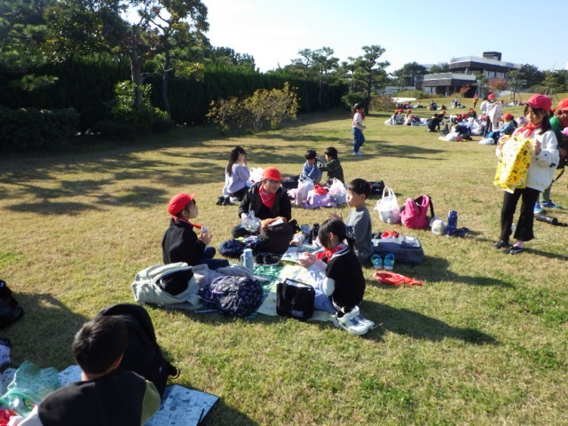 20日(木)に行われた4年生の校外学習の様子です。芝生広場でお弁当を食べた後は、広い広場で遊びました。生きものや環境について、体験しながら楽しく学んだ1日となりました。