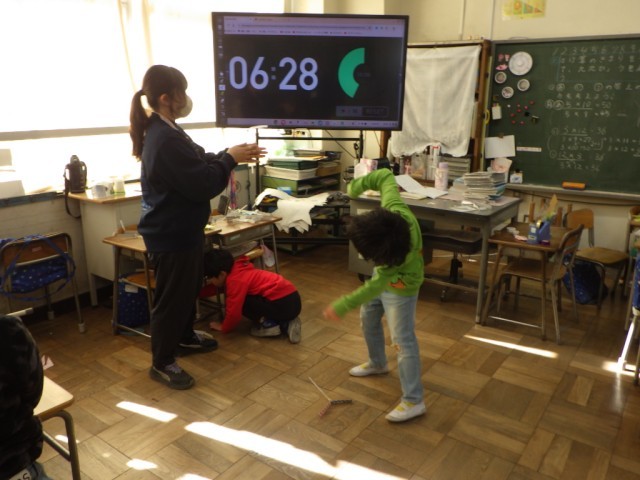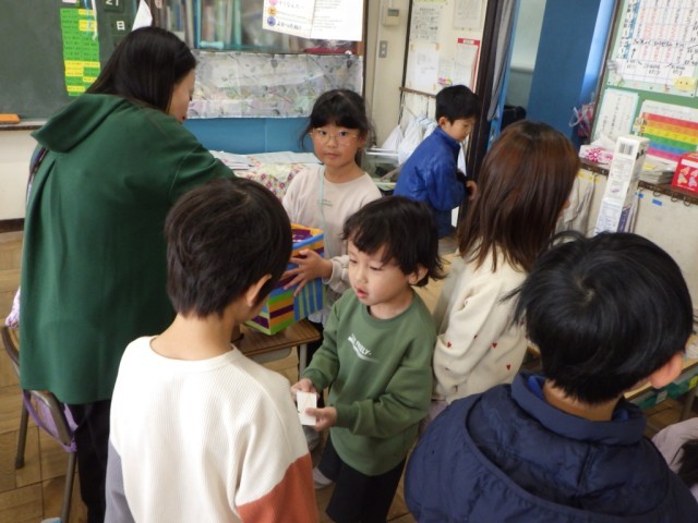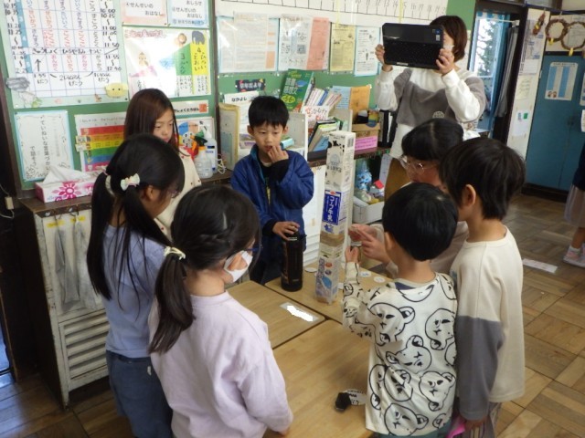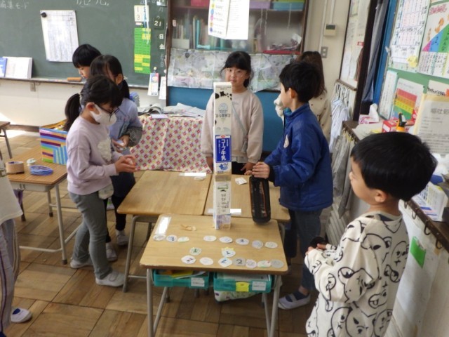 「おもちゃを作ってみよう」の様子です。1年生を招待して、学習で2年生が作ったおもちゃを使って、1年生と一緒に遊び楽しみました。2年生のお兄さん、お姉さんがとても頼もしかったです。※21日(金)の様子です。