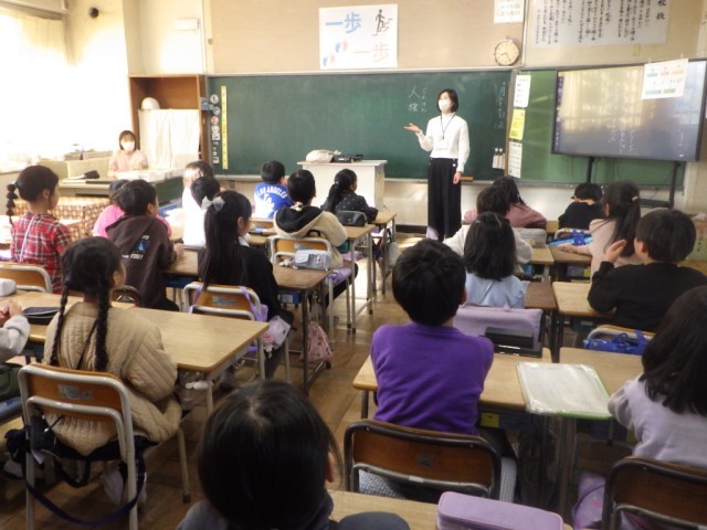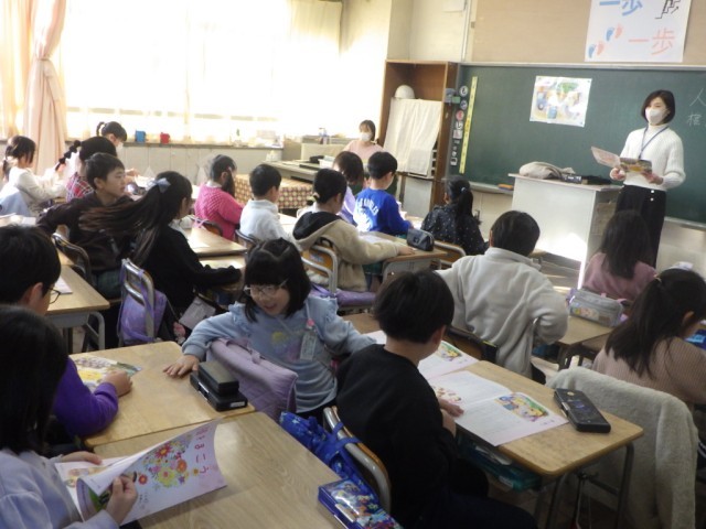 朝、モジュールの時間に2年生各学級で「人権教室」が行われました。鎌ケ谷市人権擁護委員の方をお招きし、「みんな、幸せにくらす」ために考えるひとときとなりました。