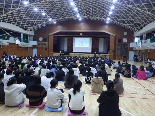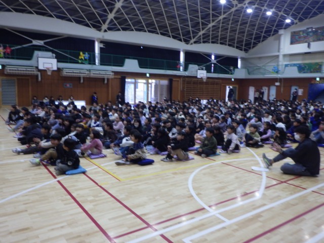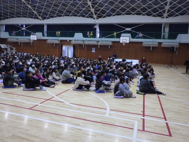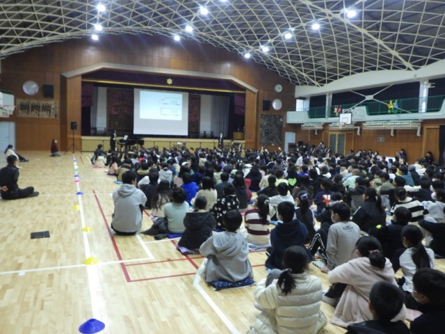 2・4・6年生の様子です。ヴァイオリン及びピアノによるアンサンブルの世界が体育館中に広がりました。