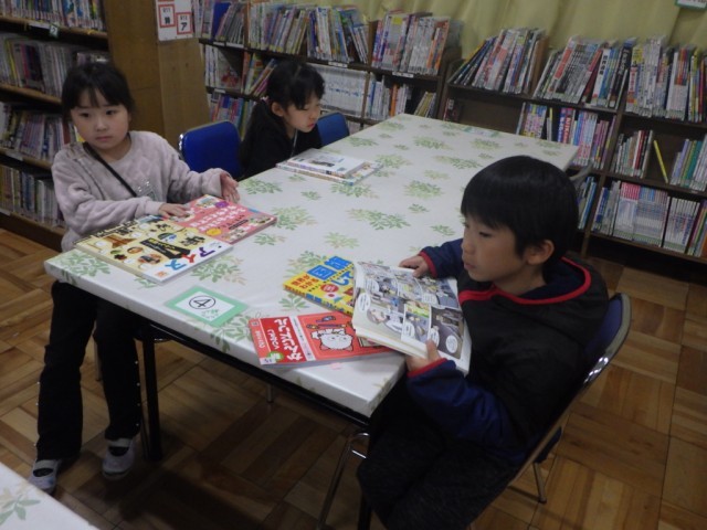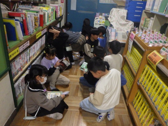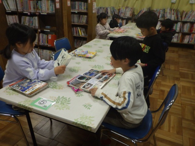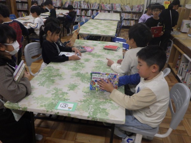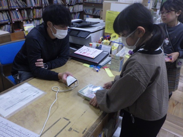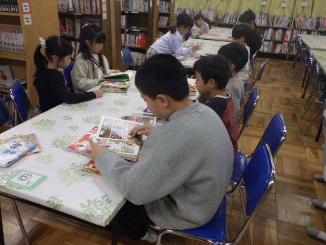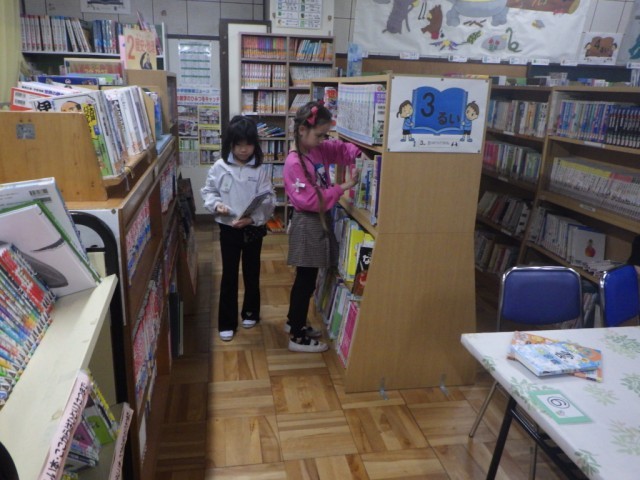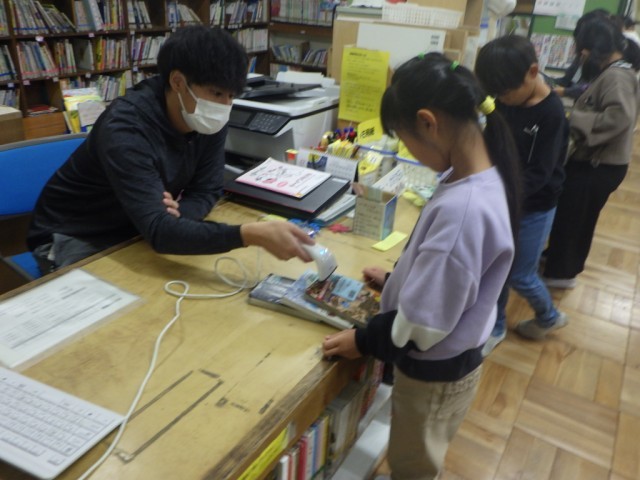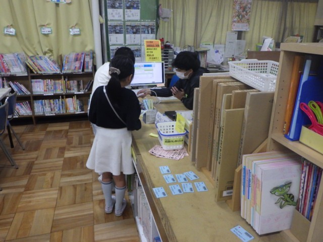 図書室での様子です。読みたい本を選び、その本を貸りる手続きをしました。※9日の様子です。