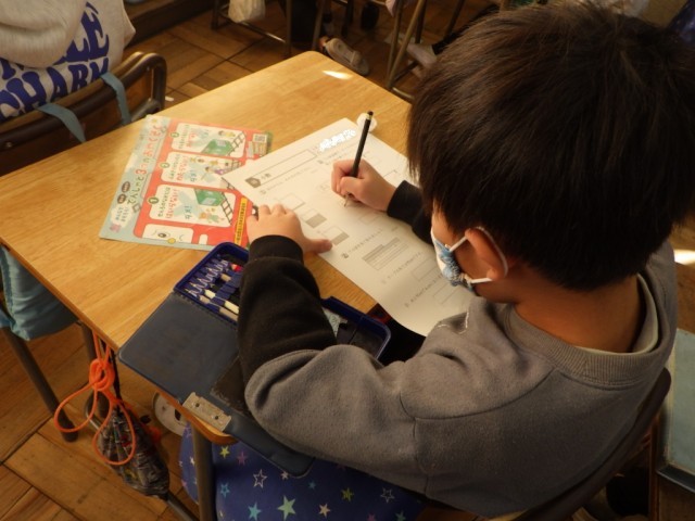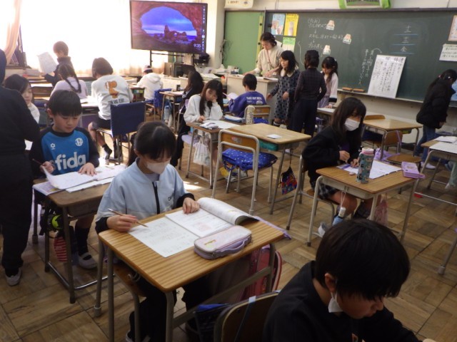 学期末、自分の課題を選択し、個々毎に学習を進めています。学期末のふりかえりの大切な時間です。