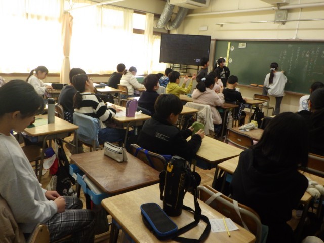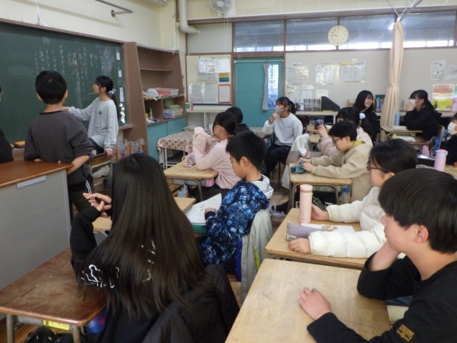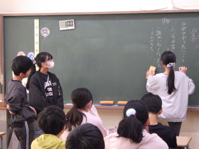 学期末に行う「お楽しみ会」の計画を話し合っています。様々な意見が活発に出されていました。