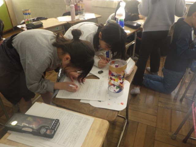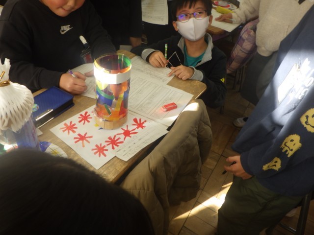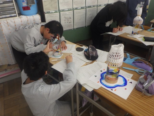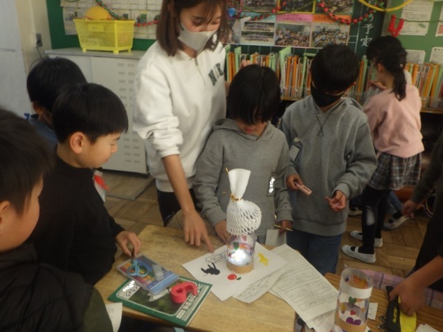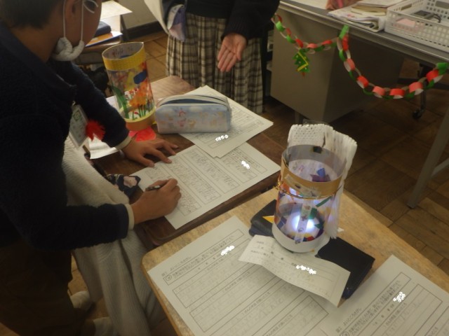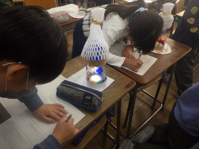 「ゆめいろらんぷを作ろう」の様子です。友だちの作品を鑑賞し、良いところをたくさん見つけて、理由を添えて書きました。※17日の様子です。