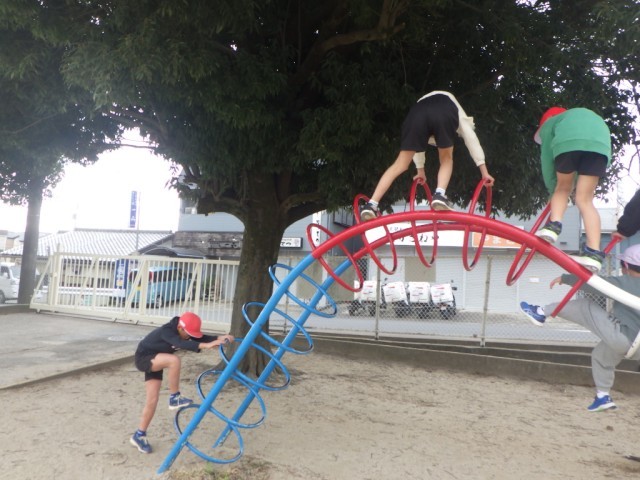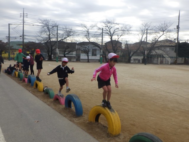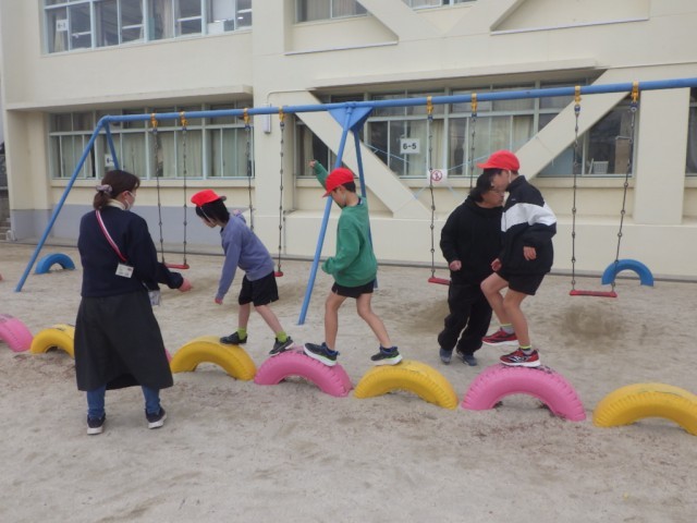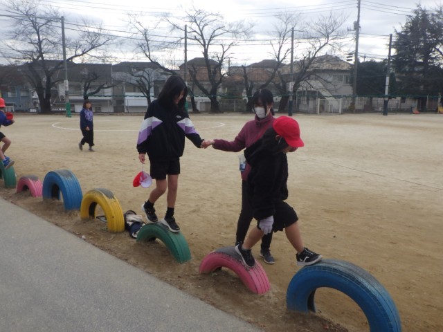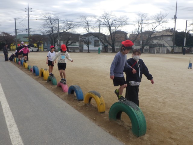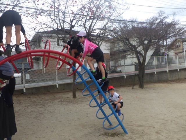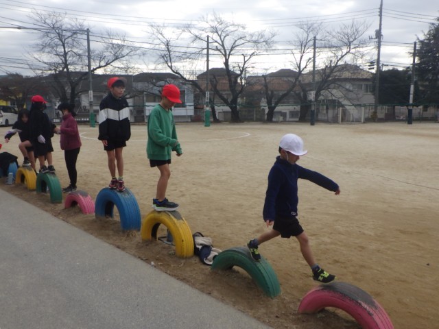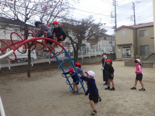 時間走の後は、遊具を使っての体力作りです。異学年ではありますが、日々の積み重ねによって、動きも慣れてきました。寒さに負けません。※19日の様子です。
