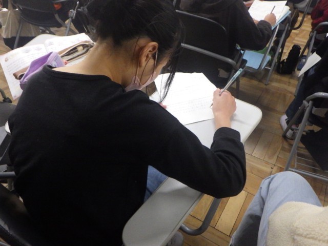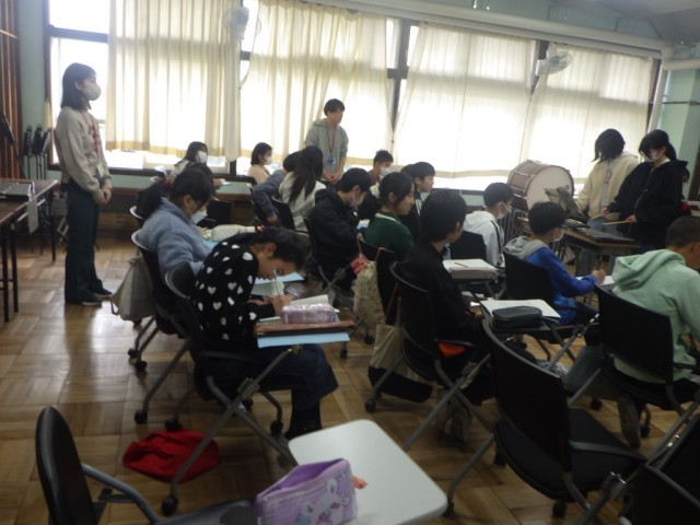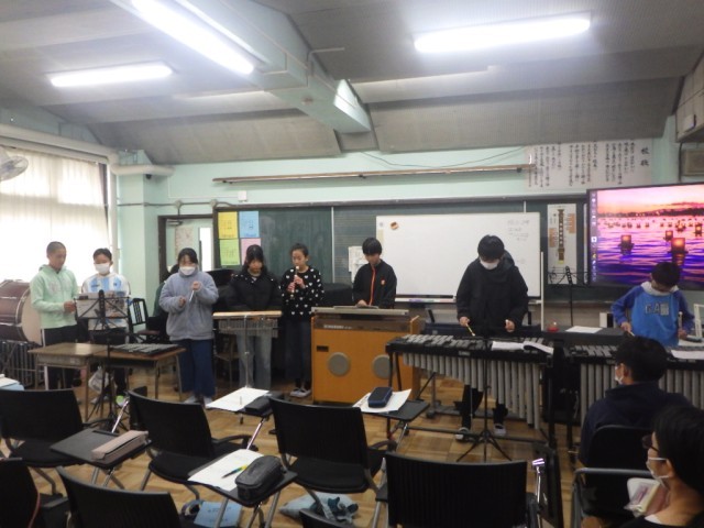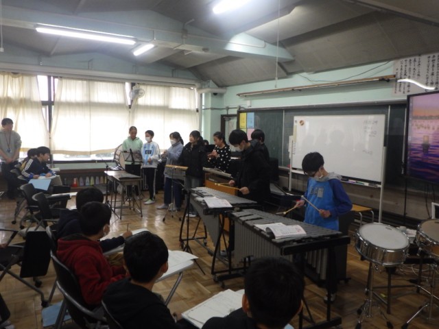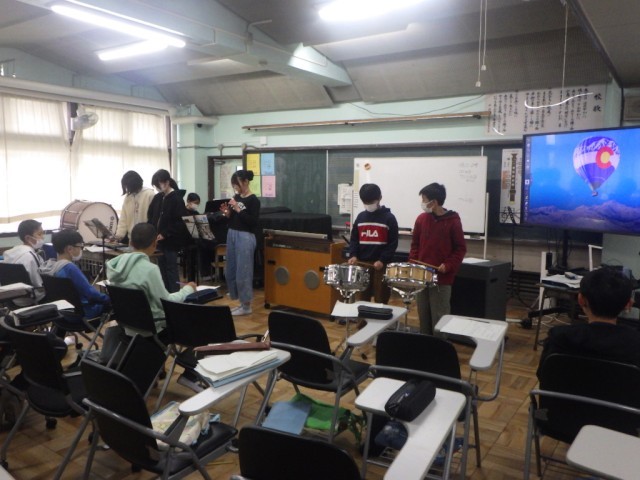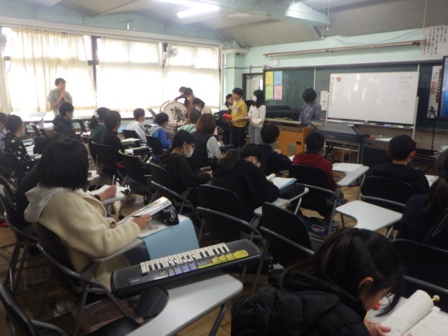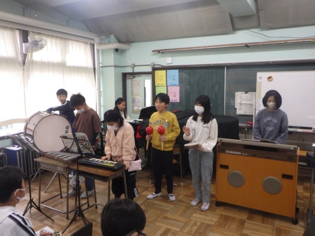 「ラバーズコンチェルト」を元とし、各グループでテーマと使う楽器を工夫したオリジナル合奏を仕上げ、発表しました。また、演奏を聴き鑑賞した内容をワークシートにまとめました。※19日の様子です。