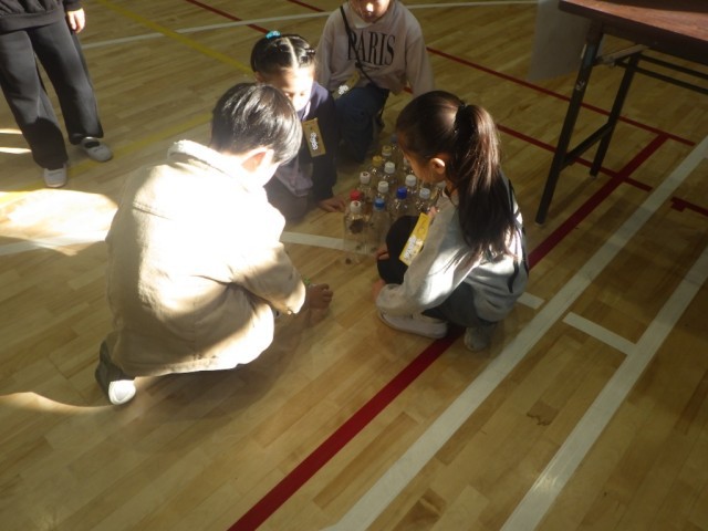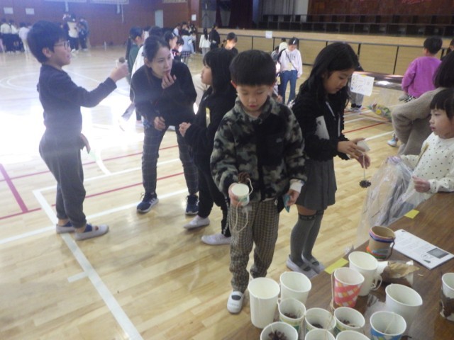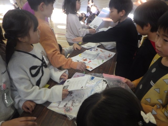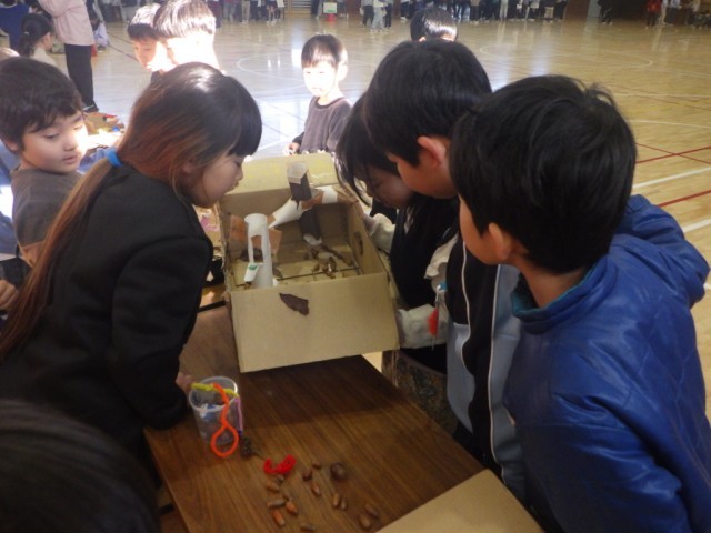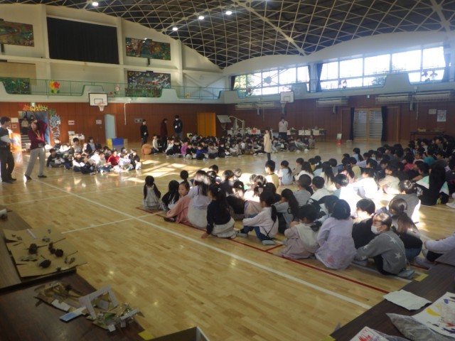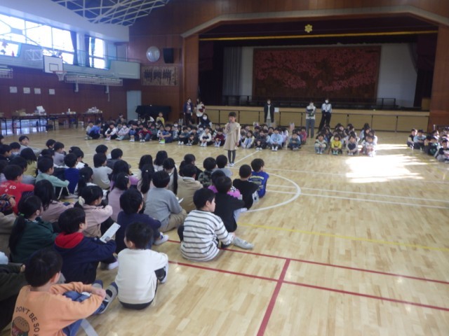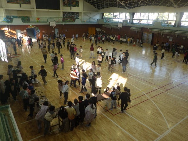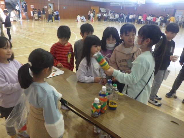 2時間目、体育館では1年生主催「おもちゃランド」が開かれました。この時間は、2年生が招待されました。