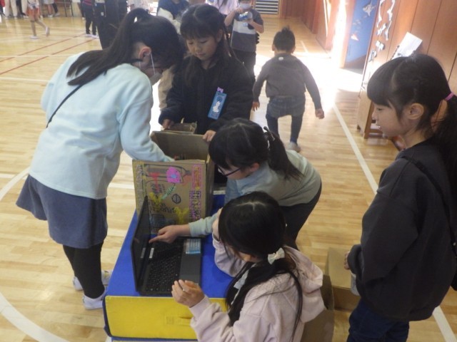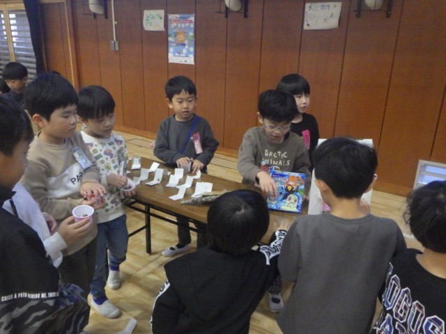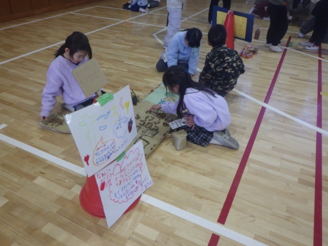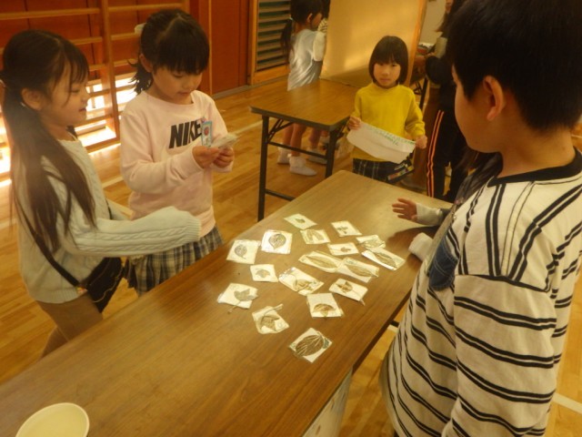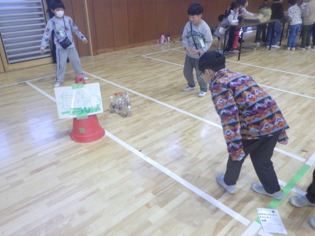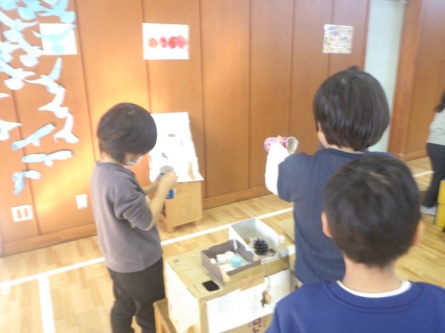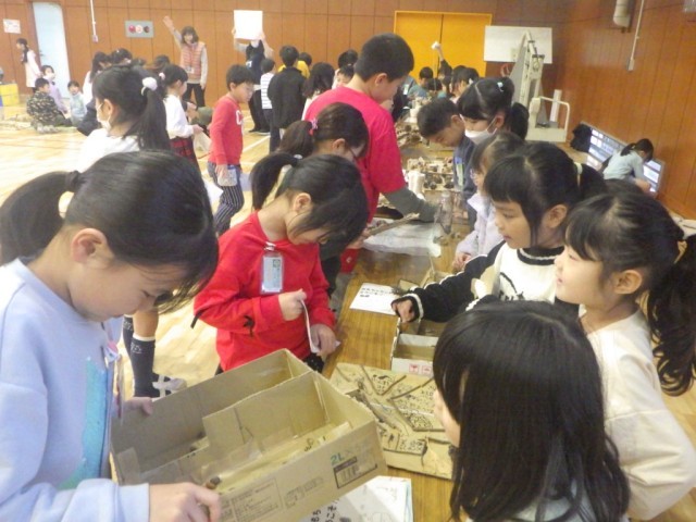 1年生が2学期に生活科で「秋」をテーマに植物やその実などを集め、それを材料に様々なおもちゃを作りました。