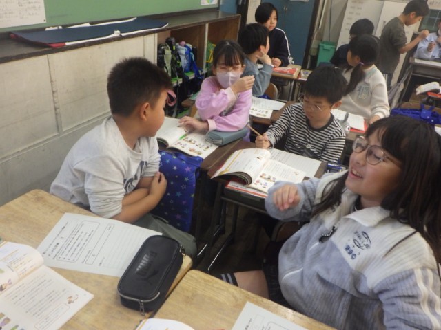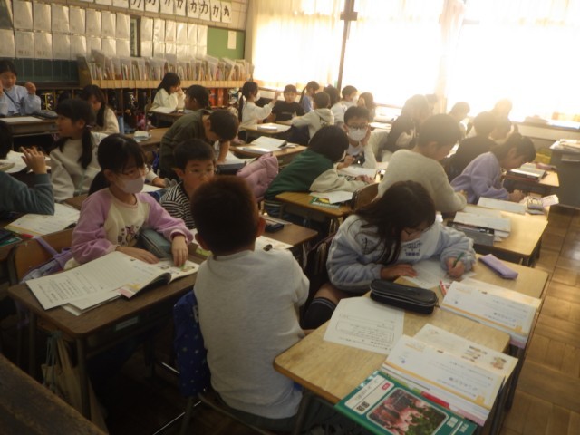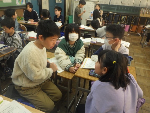 「調べたことを資料にまとめて発表しよう」の様子です。日本の年中行事について、班で分担して調べることになりました。