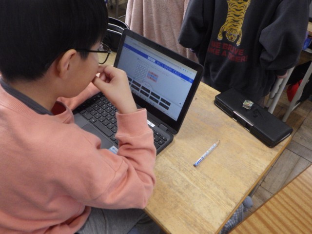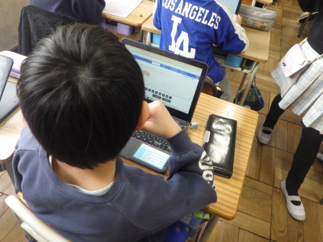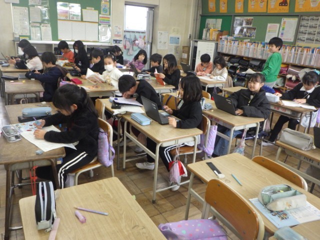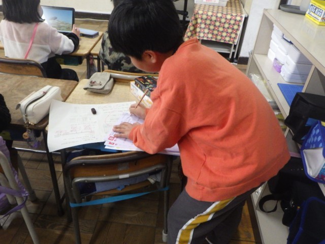 各自が自分の課題に向かって取り組んでいる様子です。学習端末機、プリント、教師の支援を受けながら、取り組んでいます。※20日の様子です。