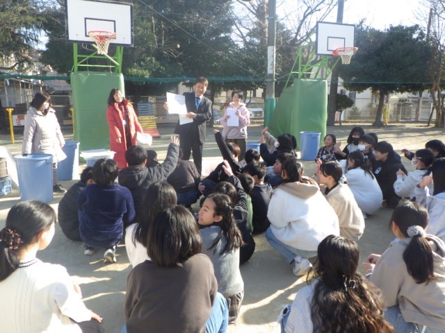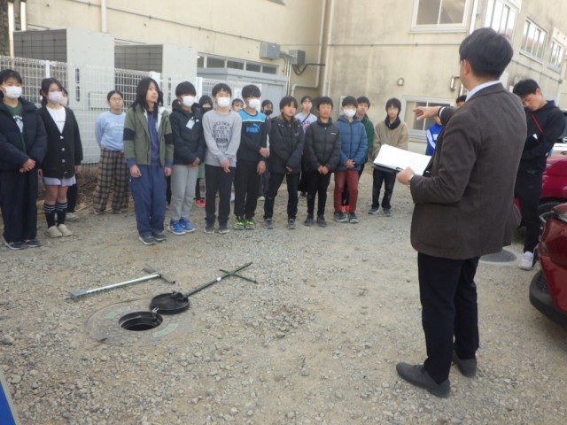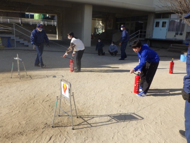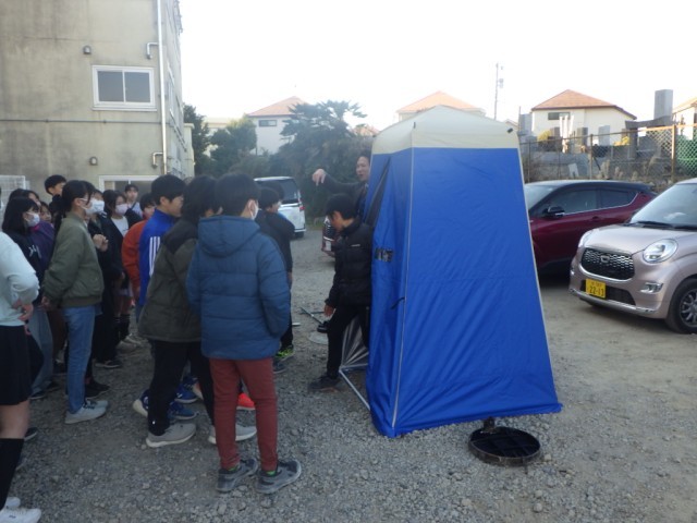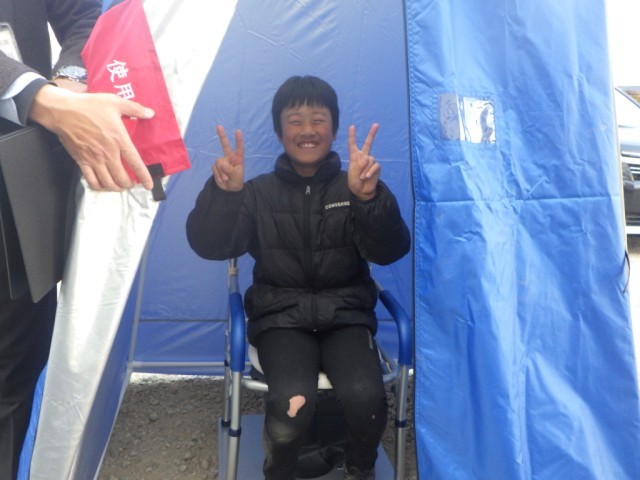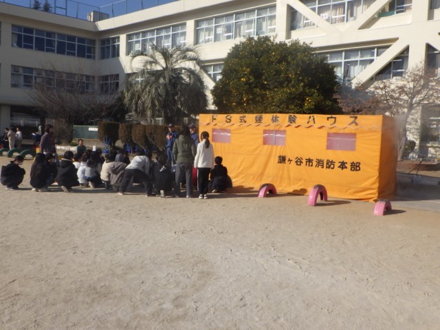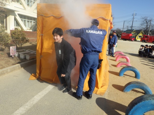 第2部は、防災体験、防災・防犯クイズです。防災体験として、消火器体験、煙体験、マンホールトイレのしくみ、その他として備蓄物について、防犯・防災クイズなどのブースを順番に回りました。鎌ケ谷消防署、市教委、安全対策課の方々の協力もと行われました。