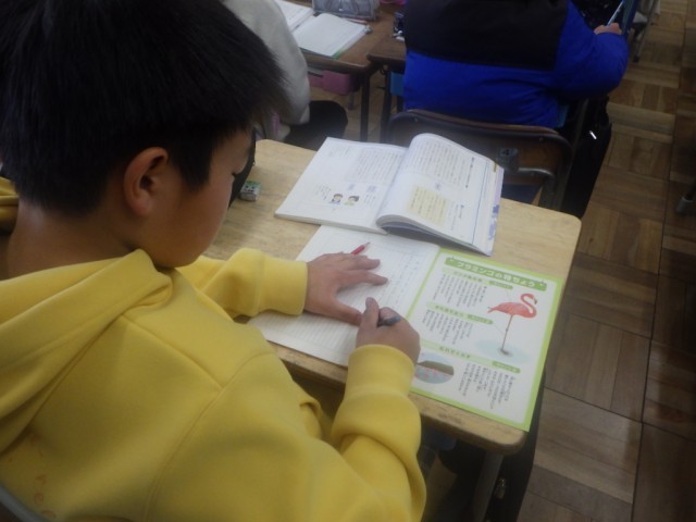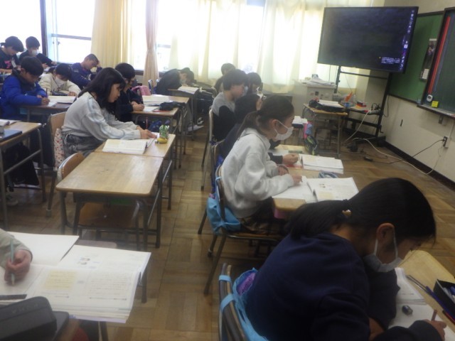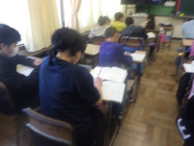 「生活をよりよくする提案」の様子です。自分の書いた文章を推敲し、よりよい文章に仕上げるためにどのようにしたらよいか、考えました。※2日の様子です。