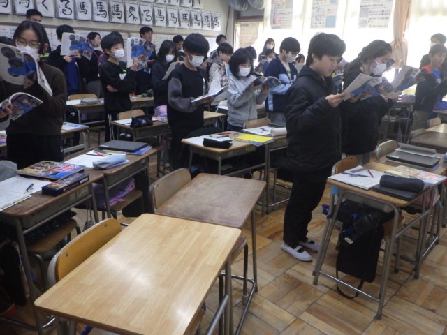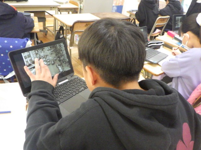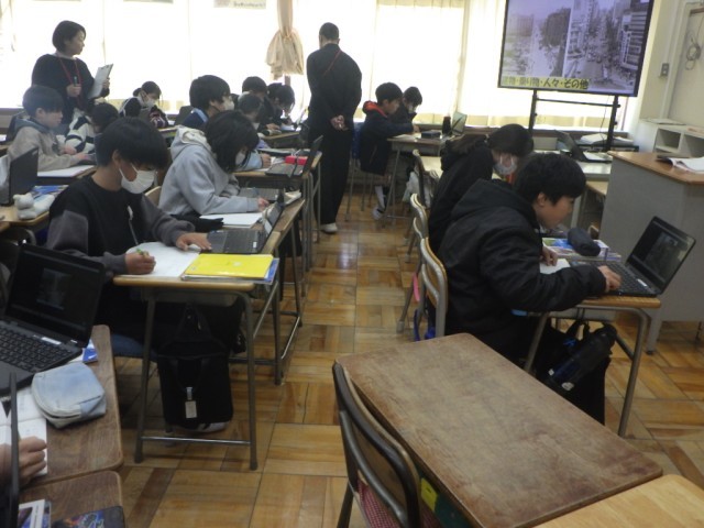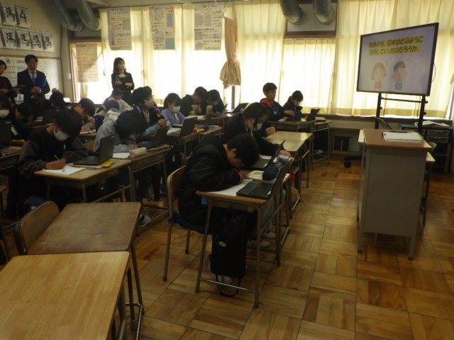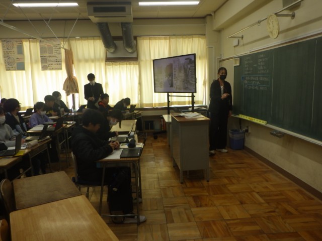 「新しい日本、平和な日本へ」の様子です。戦後の後、日本はどのように復興していったのだろうか、調べました。授業研究会の一環として行われました。