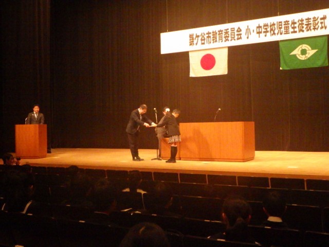 2月10日(火)鎌ケ谷市民会館 きらりホールにおいて、「鎌ケ谷市教育委員会 児童・生徒表彰式」が行われました。本校の児童も表彰を受けました。