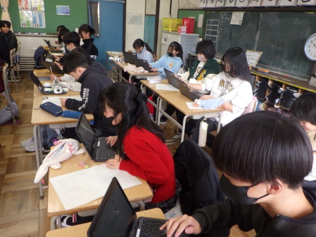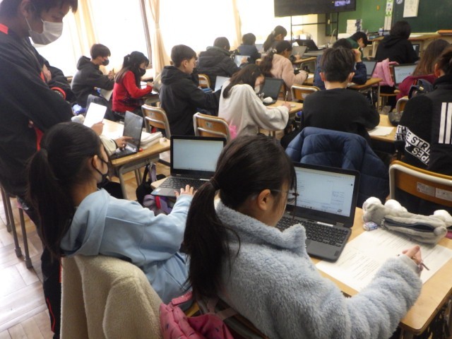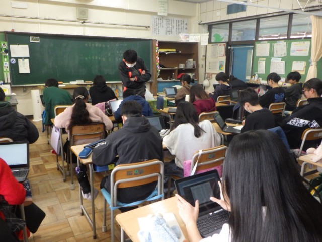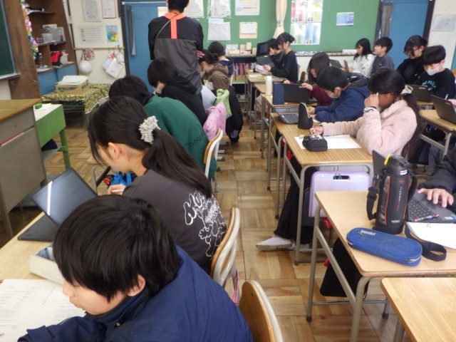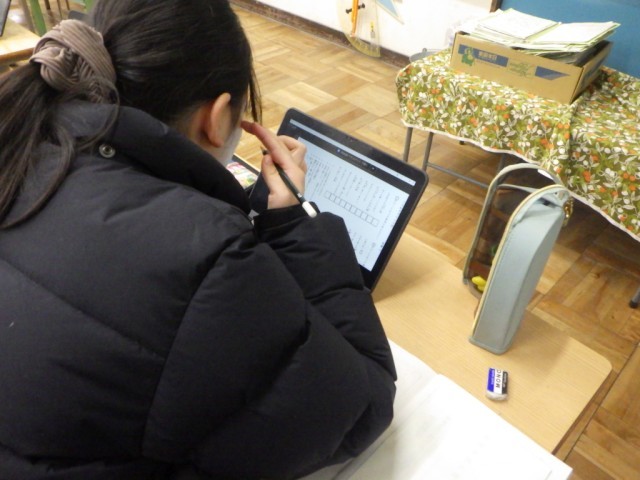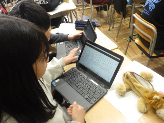 「ことわざ」の様子です。それぞれが学習端末機を活用して、意味などを調べていきました。