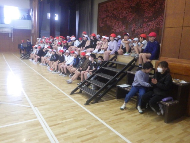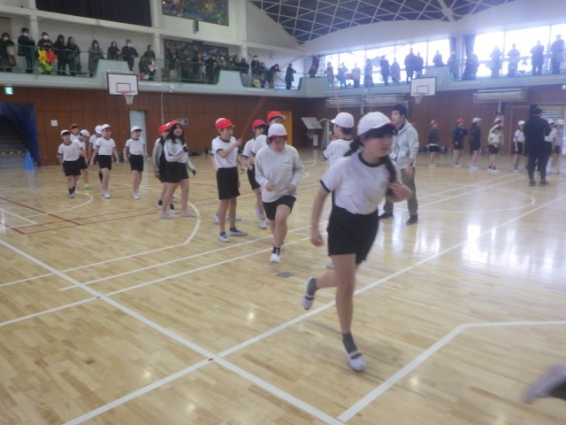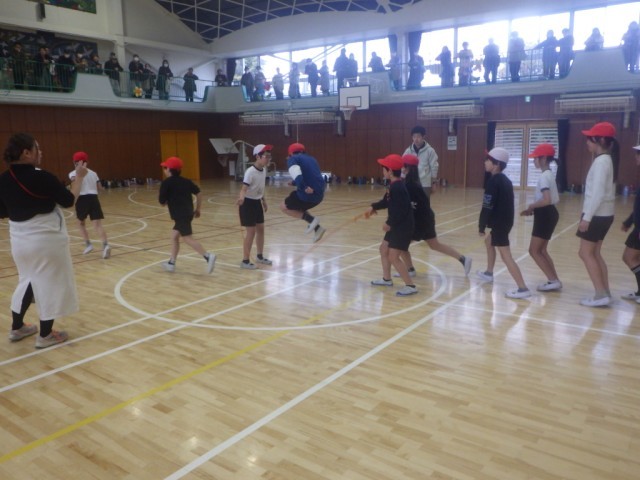 体育「縄跳び大会」。長縄記録会に向けて、これまで培ってきた練習の成果を披露しました。